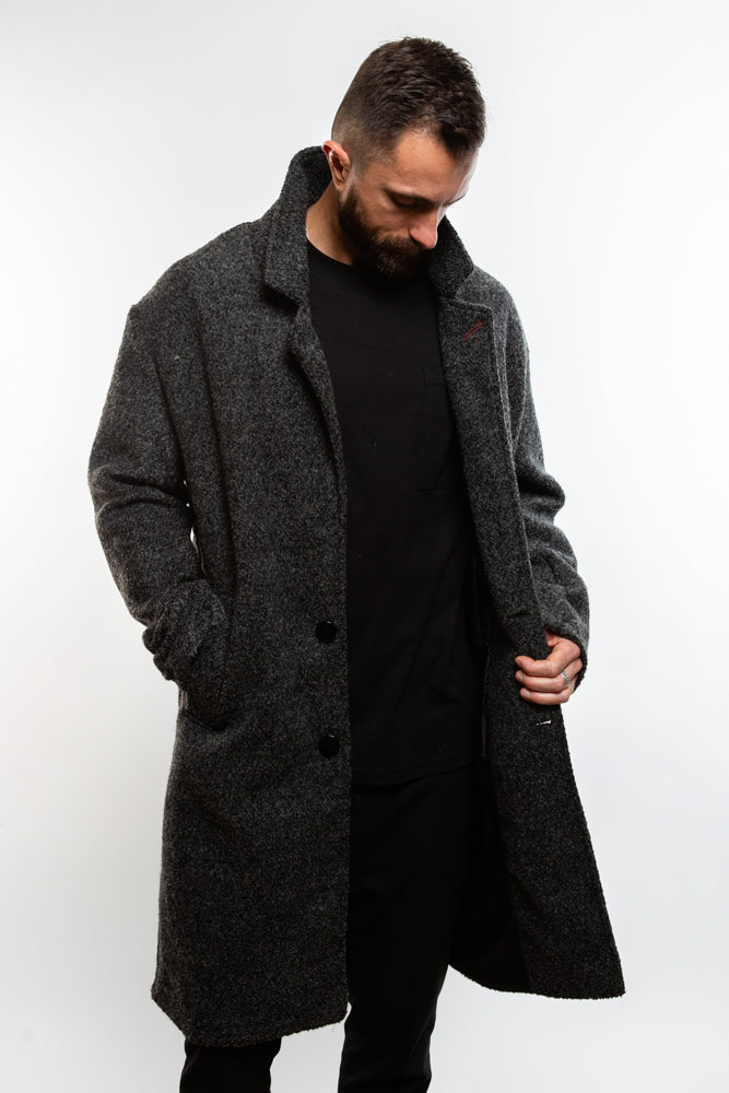Introducing our luxurious Wool Peacoat in classic Charcoal. Crafted from a premium wool blend, this oversized coat boasts a sophisticated 2 button closure and convenient pockets. The lapel collar adds a touch of elegance to this timeless pea coat. Stay warm and stylish this season with our exquisite Wool Peacoat.