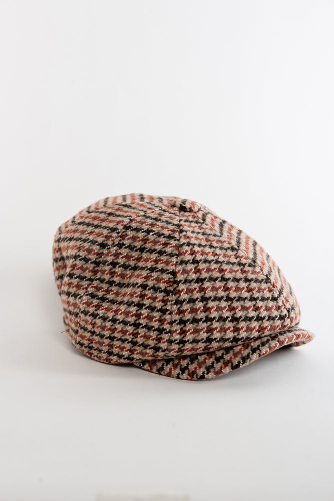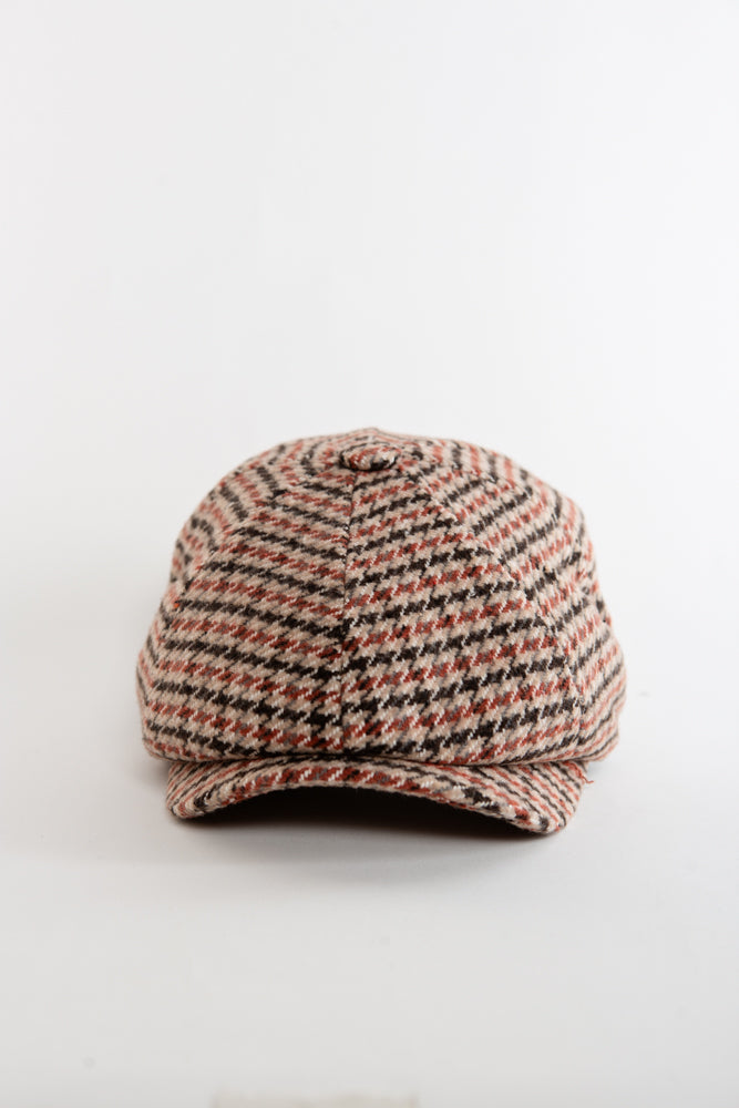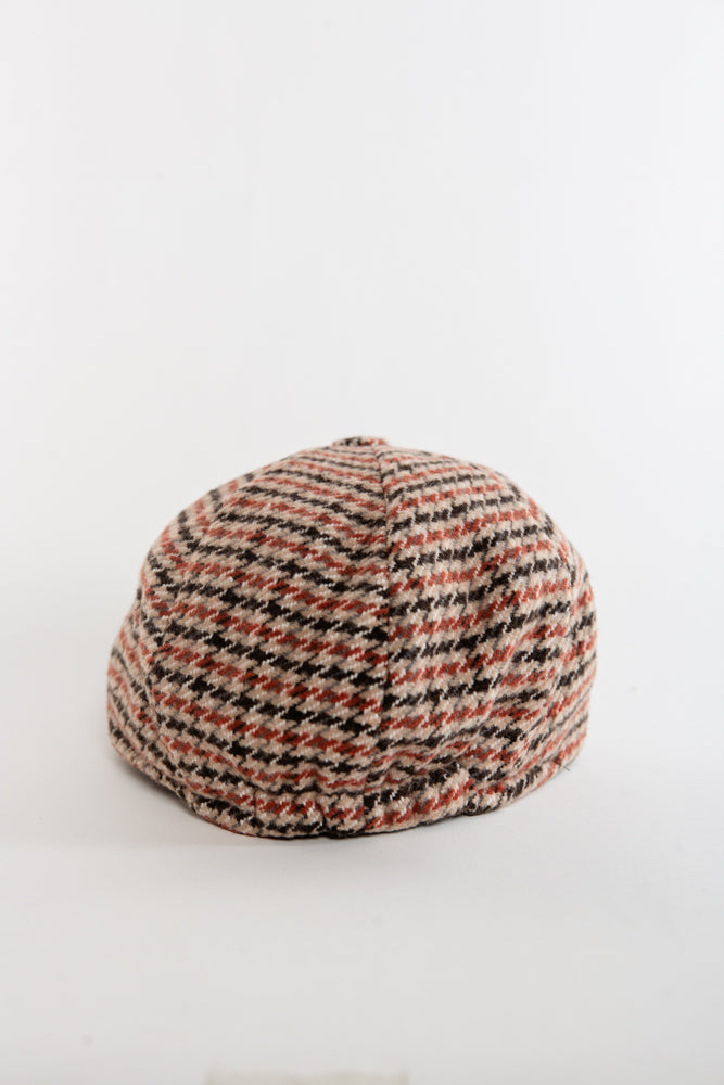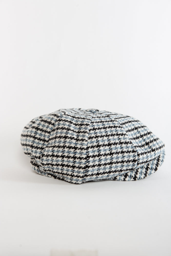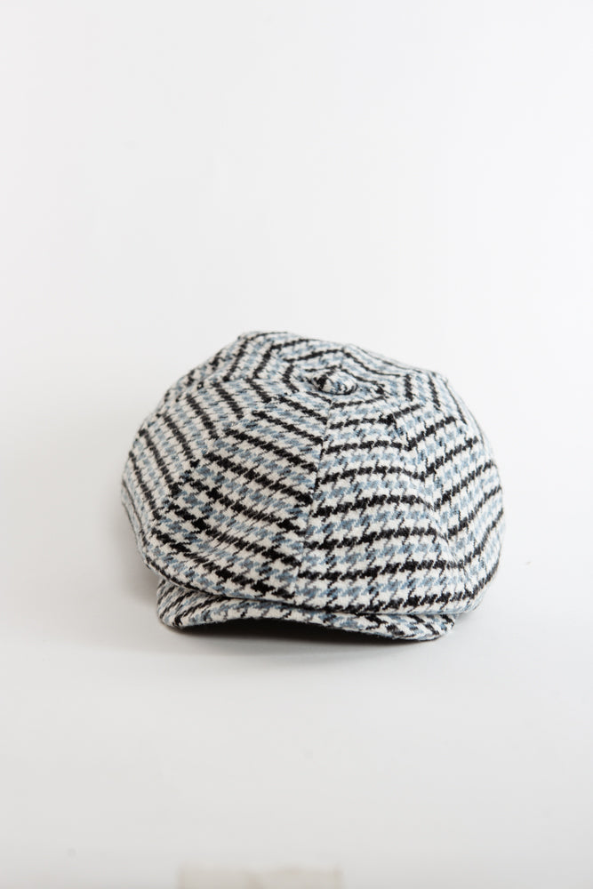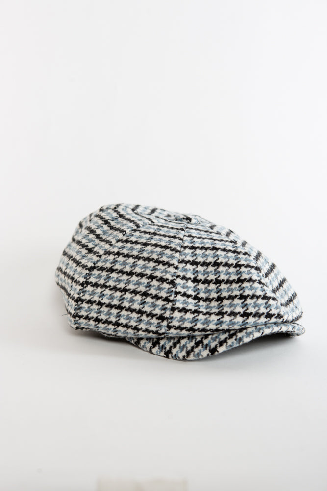 Wool Blend Paperboy Cap - Grey Houndstooth