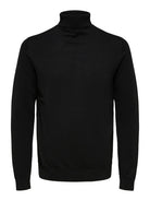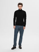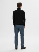 The Berg Roll Neck in Black offers a refined, regular fit crafted with at least 50% organic cotton for enhanced sustainability.