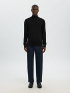 Crafted from 100% RWS-certified Merino wool, this black roll neck pullover offers exceptional softness and natural breathability.