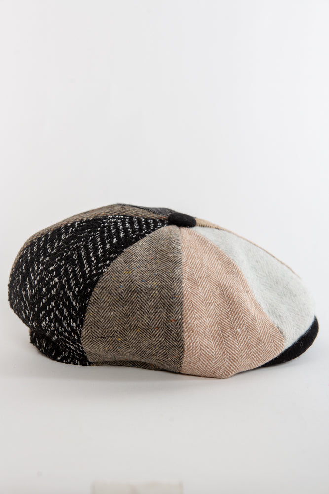 Patchwork Wool Blend Newsboy Cap - Multicolor