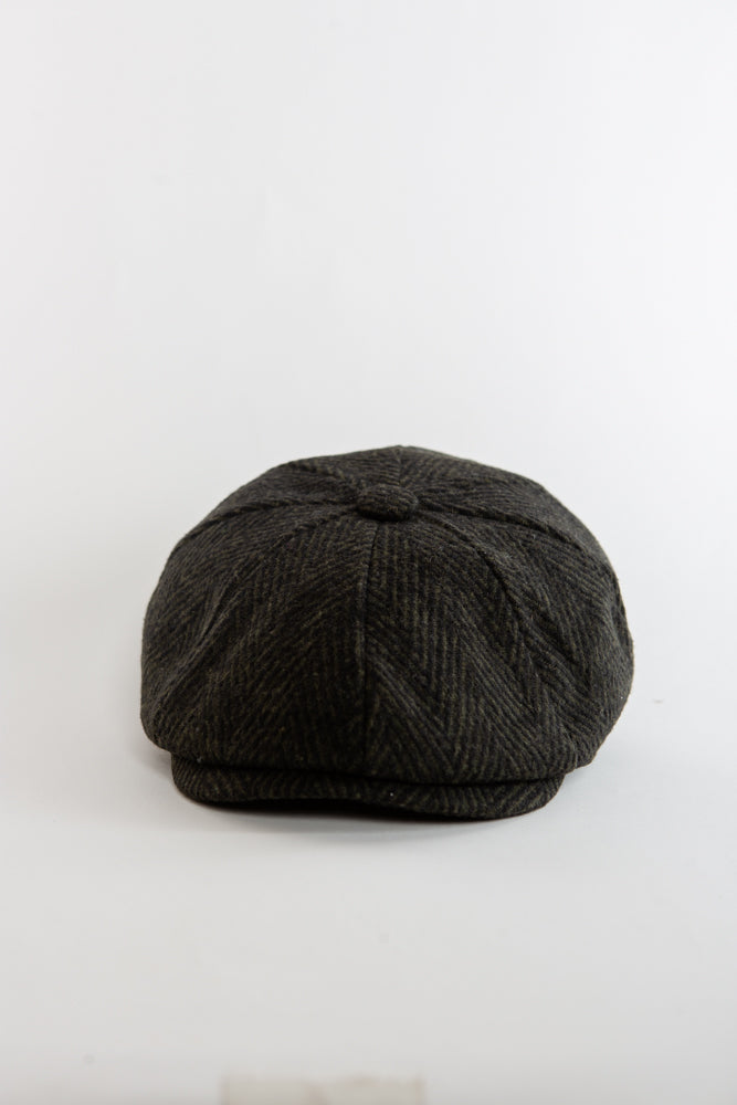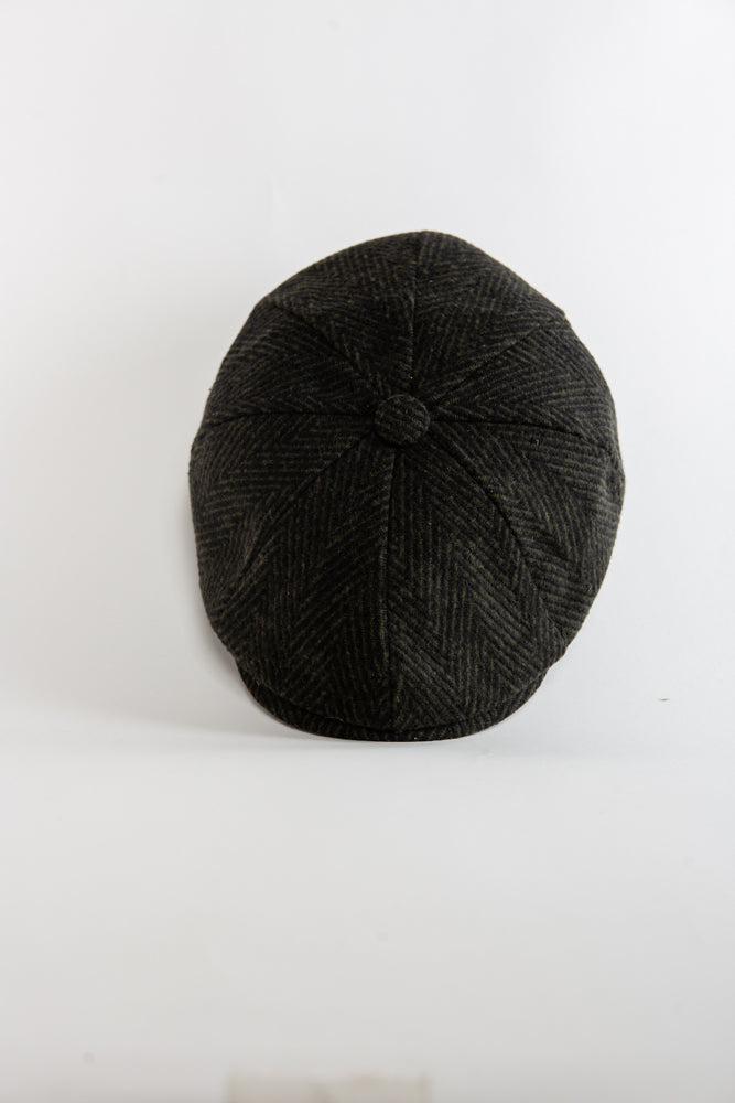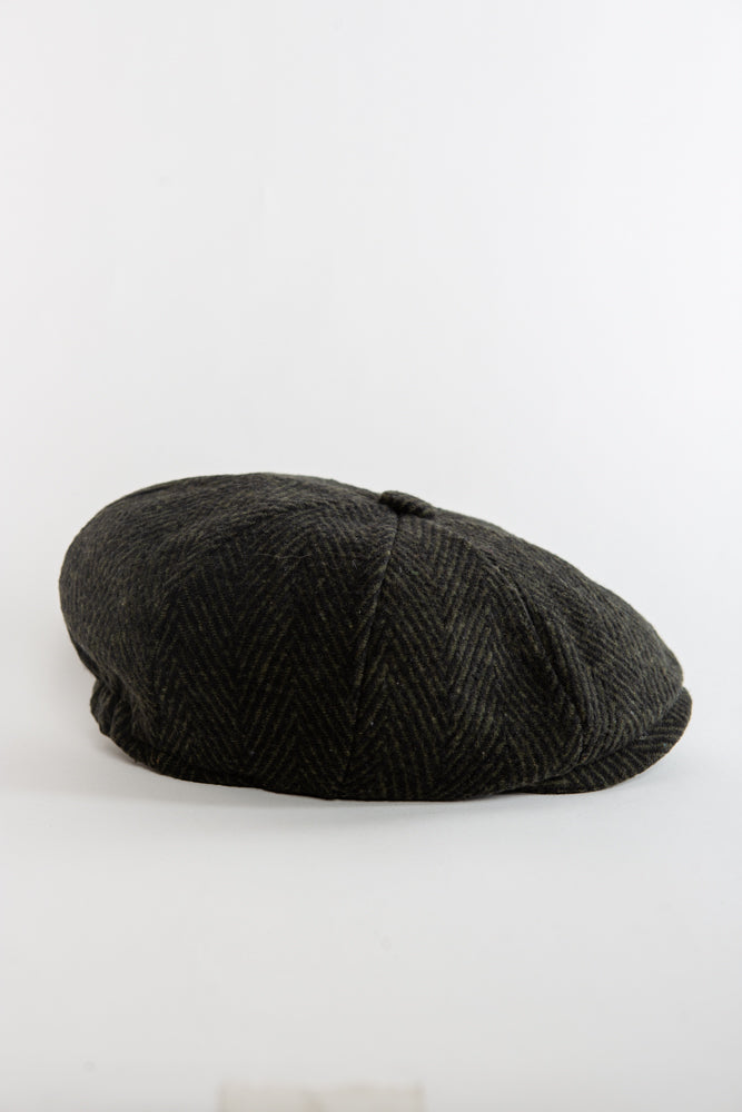 Wool Blend Paperboy Cap - Grey Houndstooth