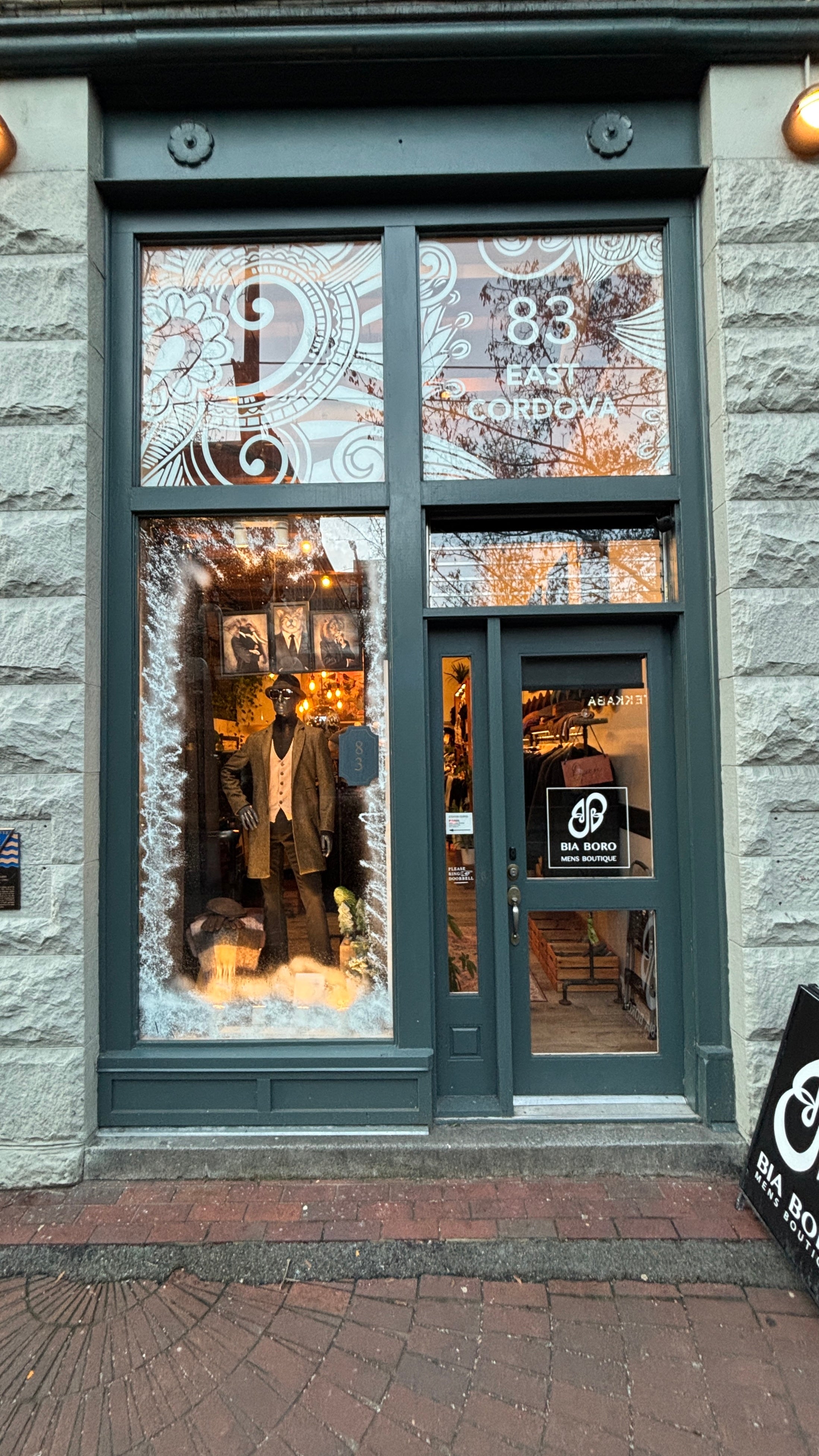 Bia Boro Menswear is more than a retail space. It’s a curated menswear boutique in the heart of Gastown where style, music, and culture come together. The in-store experience is intentionally personal and unhurried, offering a place to explore quality pieces, get honest guidance, and take your time. Whether you’re refining your wardrobe, shopping for a specific occasion, or simply curious, you’re welcome to experience the space at your own pace.