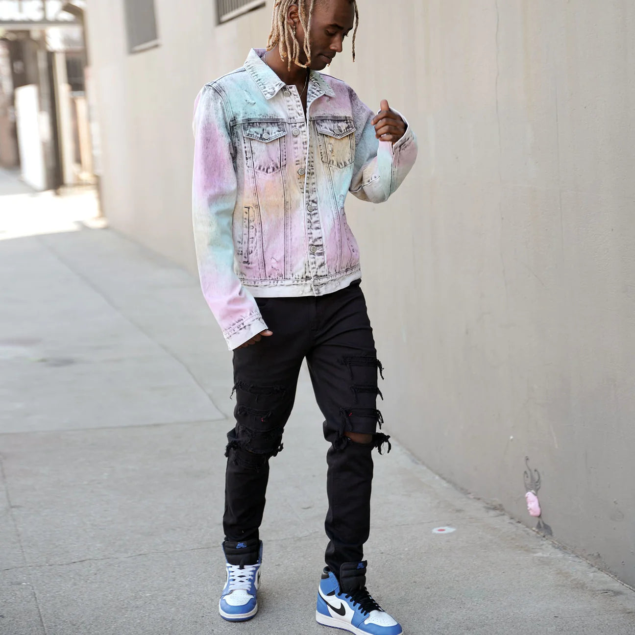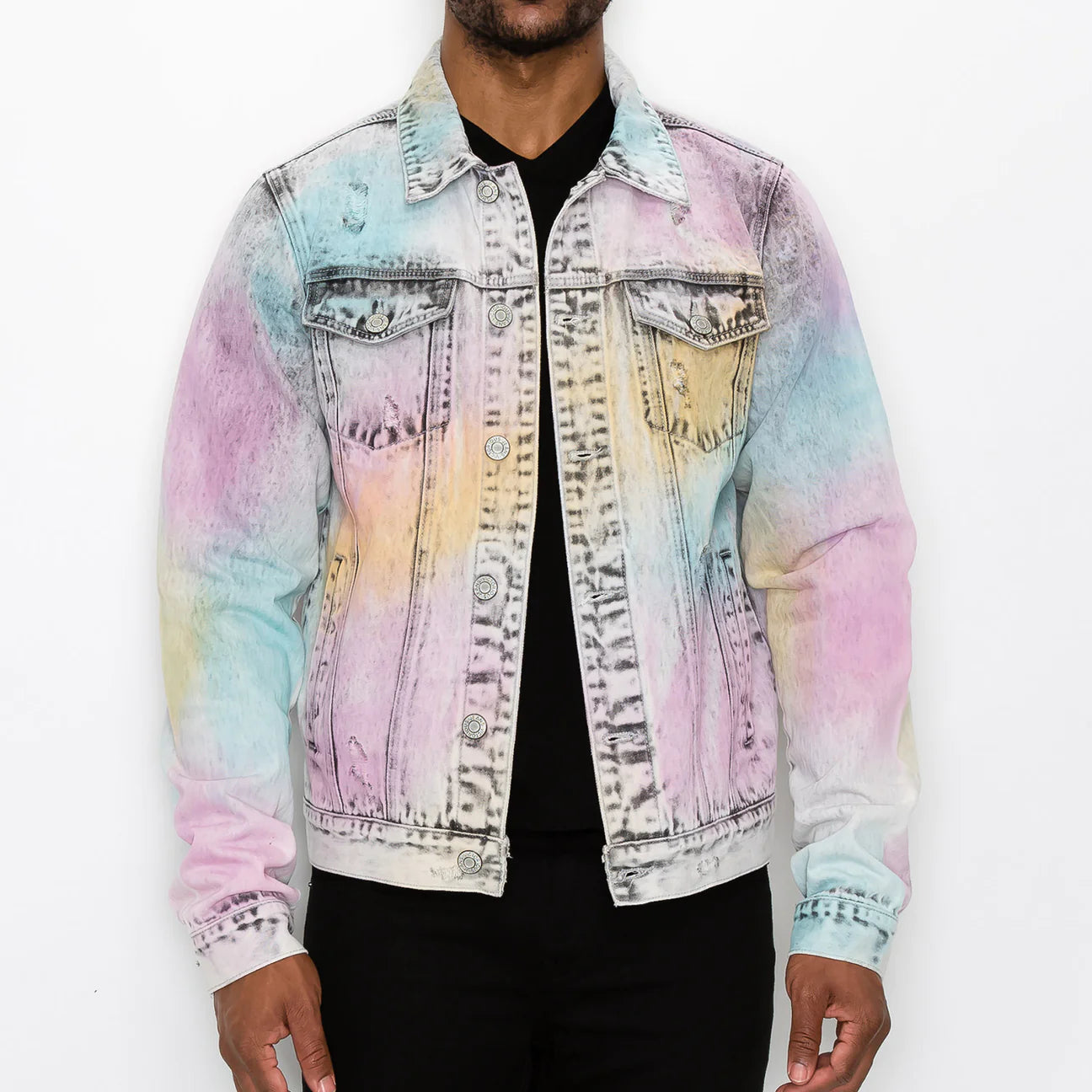 Unleash your adventurous and bold style with our Airbrushed Denim Jacket. Featuring unique airbrushed details and secure button closures. Keep your essentials close with buttoned chest pockets and side slit pockets. Made with 100% cotton denim. Shop now at Bia Boro Menswear in the heart of Gastown, Vancouver.