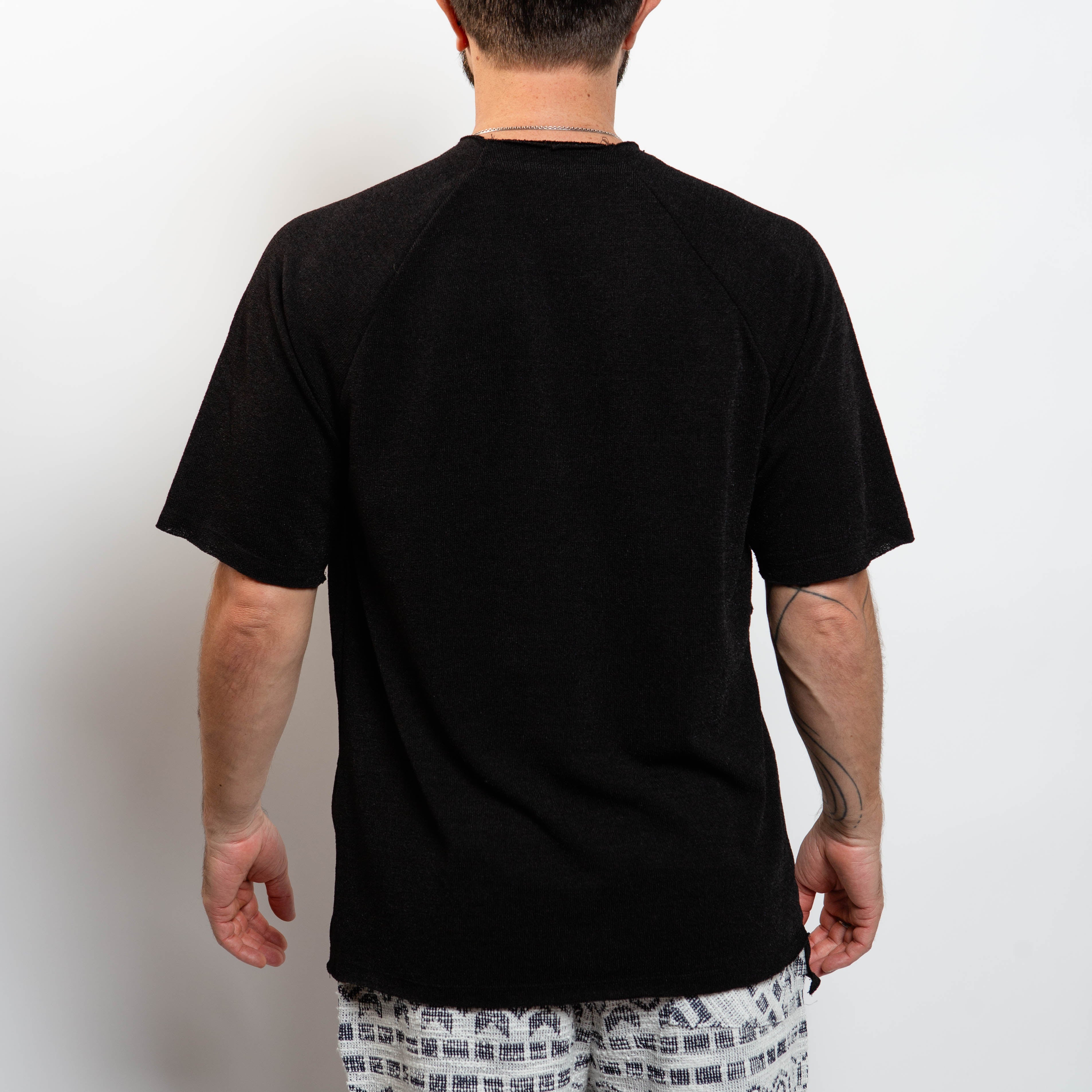 Cut from a textured midweight cotton blend, the tee offers a sculptural silhouette that drapes effortlessly while holding its form. Designed outside the bounds of conventional tailoring, this shirt makes a subtle yet striking statement—ideal for the style-forward individual.