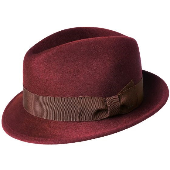 From Bailey of Hollywood's LiteFelt collection, this top quality hat is made from fine polished wool to give it a soft texture. It features a two-inch brim and a center dent crown. This hat is water repellent and shape retentive. Includes a grosgrain hat band with bow and comfort sweatband. Lined.