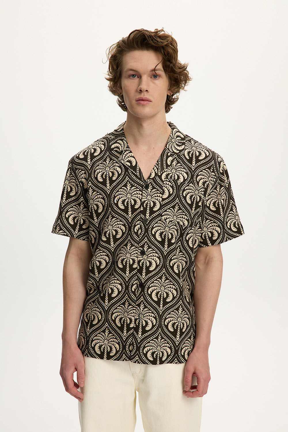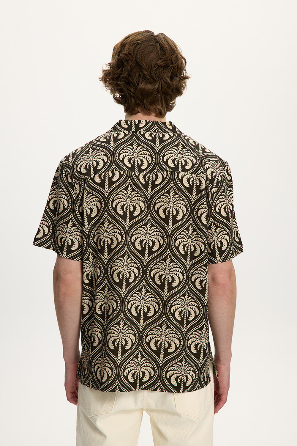 Get ready to hit the beach in style with our Beach Shirt in the trendy Damask Palm print. This versatile printed collared button-down shirt is a must-have for your summer wardrobe, effortlessly taking you from day to night. Made from lightweight material, it's perfect for those warm days and comes in various breezy patterns.