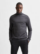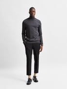 The Berg Roll Neck in Grey offers a refined, regular fit crafted with at least 50% organic cotton for enhanced sustainability.