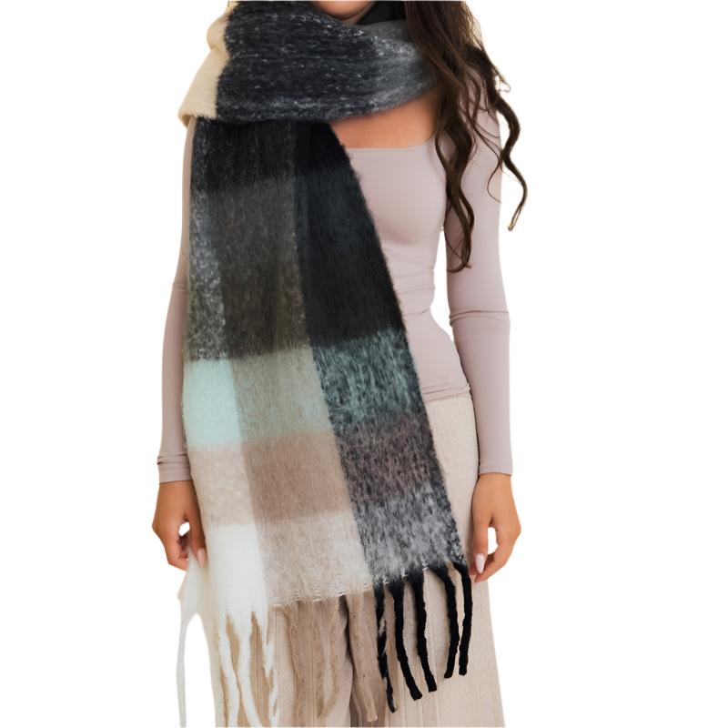 Elevate your fall and winter wear with the effortlessly cozy Cozy Breeze Oversized Fringe Scarf. This must-have accessory boasts a timeless plaid pattern in dreamy hues, perfect for adding warmth and style to chilly days. Its oversized fit ensures maximum comfort, while the playful fringe adds a touch of flair.