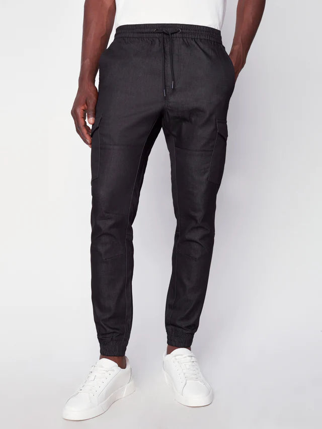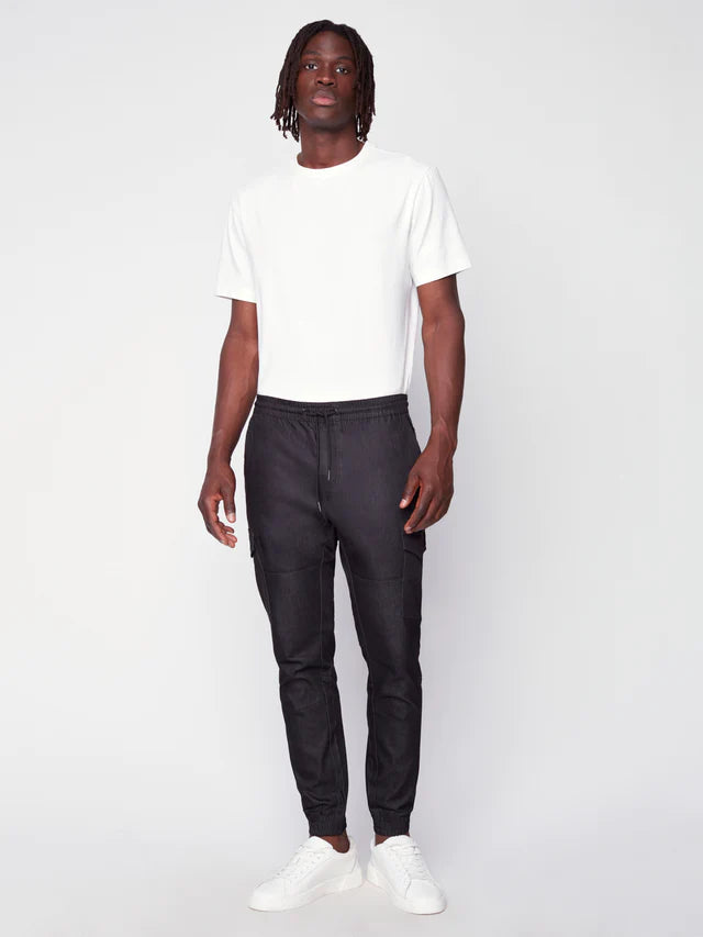 Upgrade your style with this Bungee Denim Cargo Jogger. Crafted with bungee denim fabric, these joggers offer a comfortable and flexible fit. With a drawstring waist and cargo-style pockets, they provide a practical and trendy look..