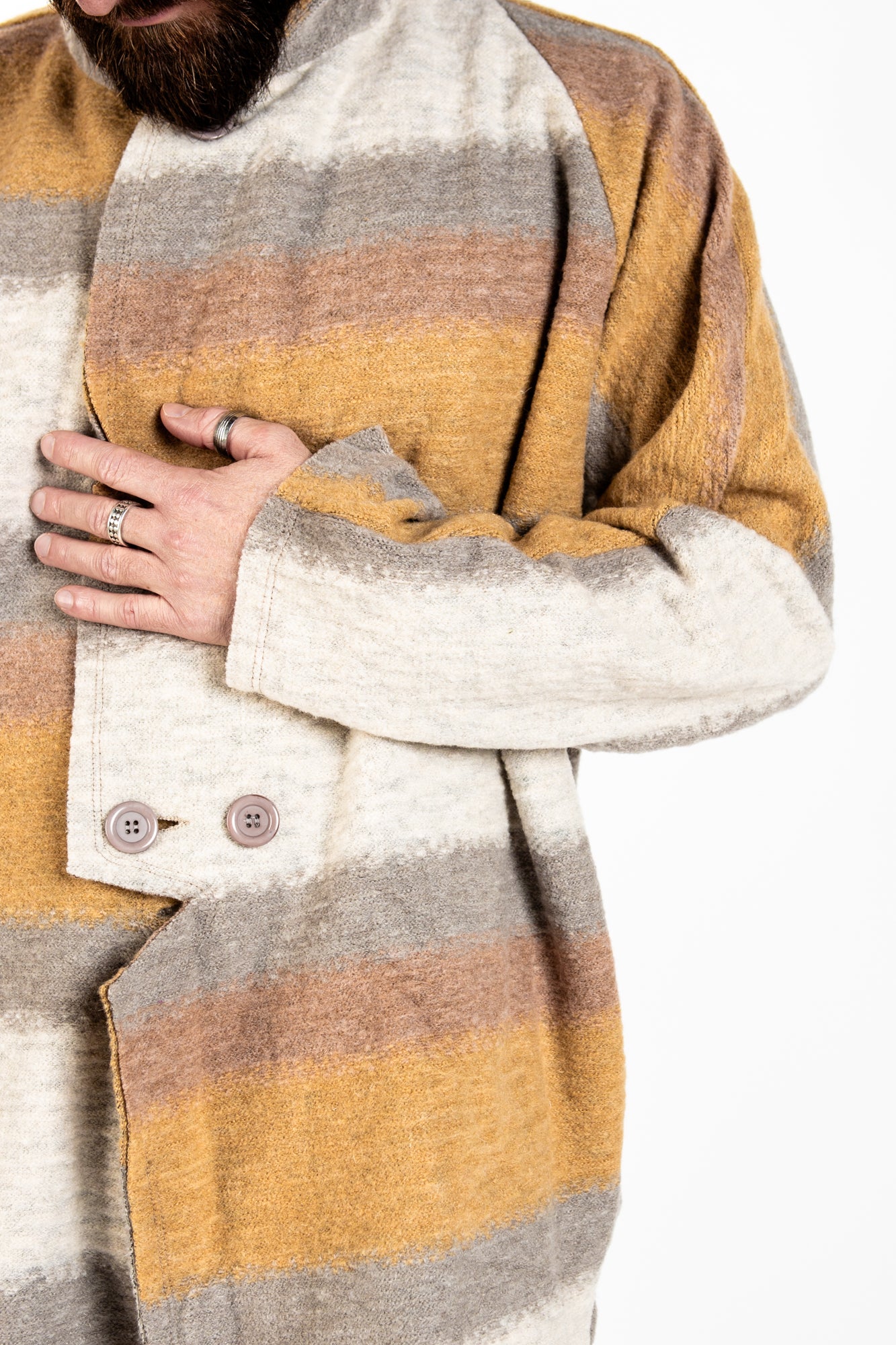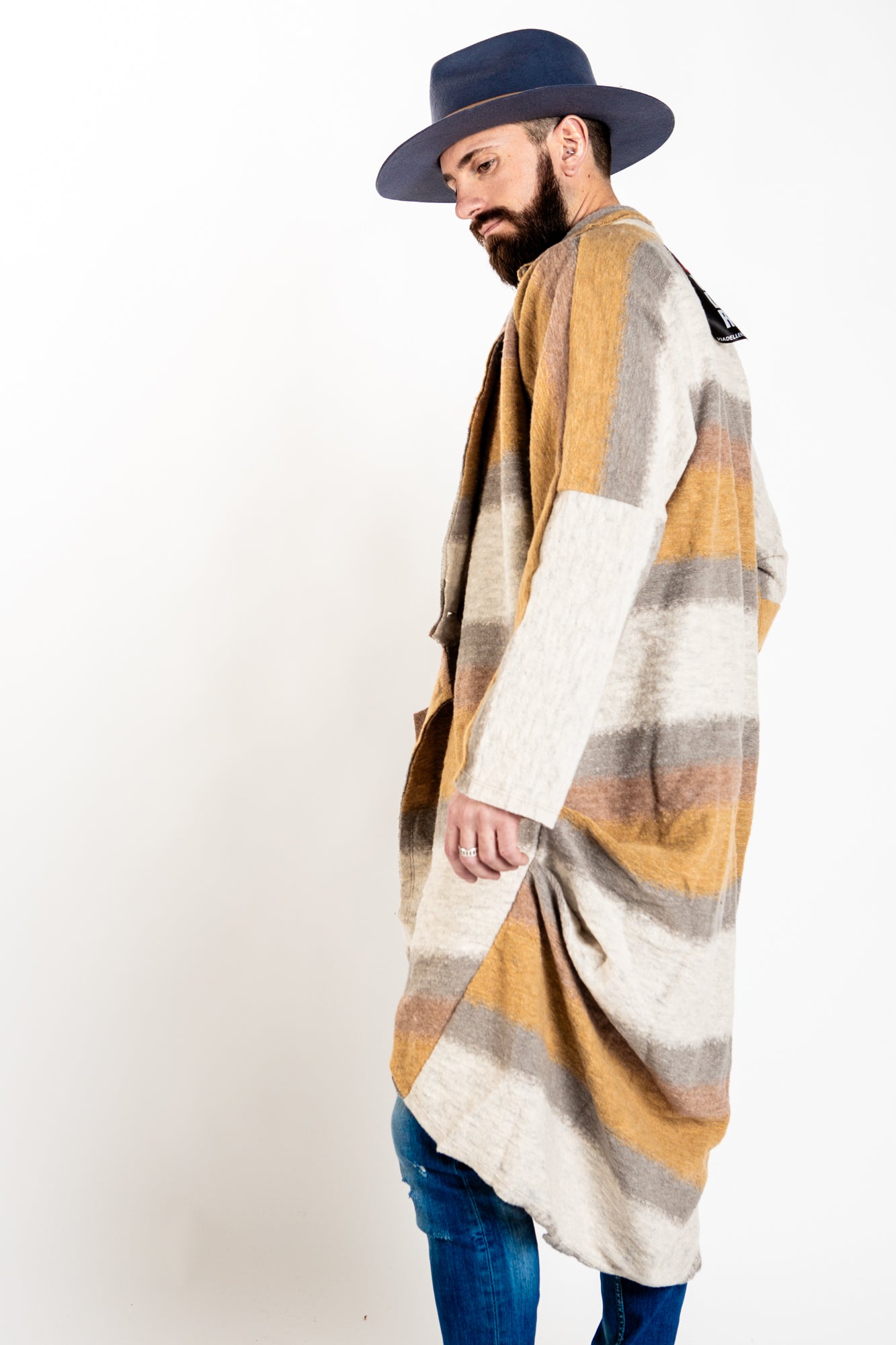 This patchwork cardigan is a Japanese-inspired work of art. Crafted with a unique combination of plaids, patterns, and colourful patches, this one-of-a-kind garment is available in limited quantities. The perfect fit for al