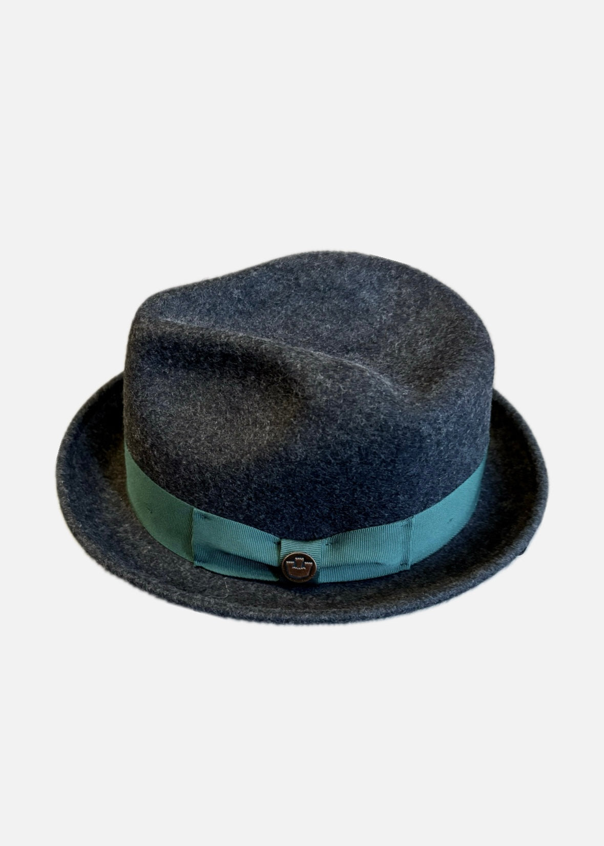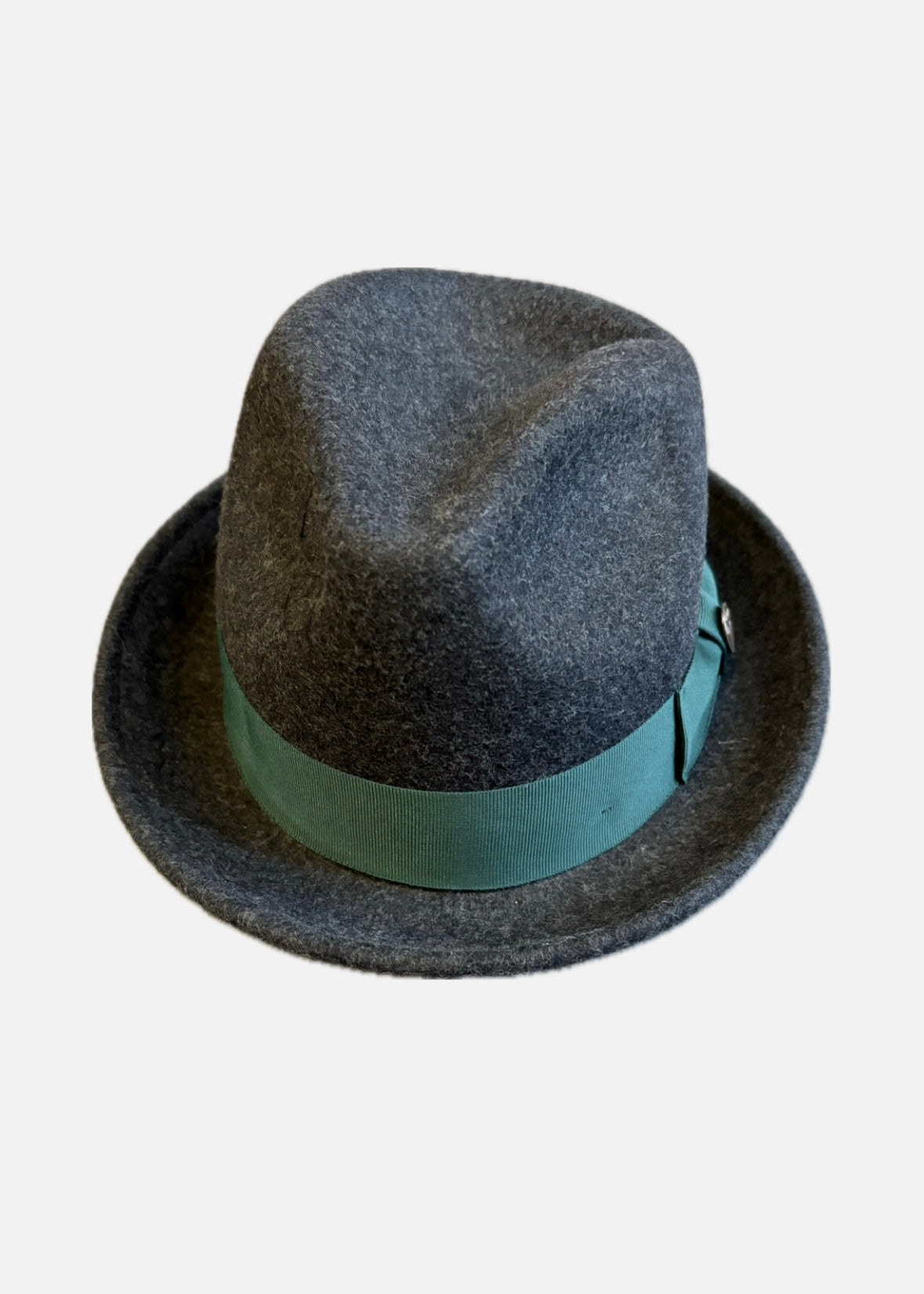 An eloquent grosgain bow and emblematic logo pin add an air of sophistication to this felted-wool fedora, evoking classic 1940s style.