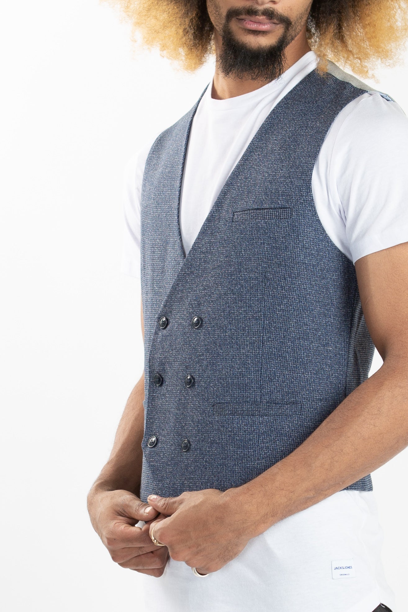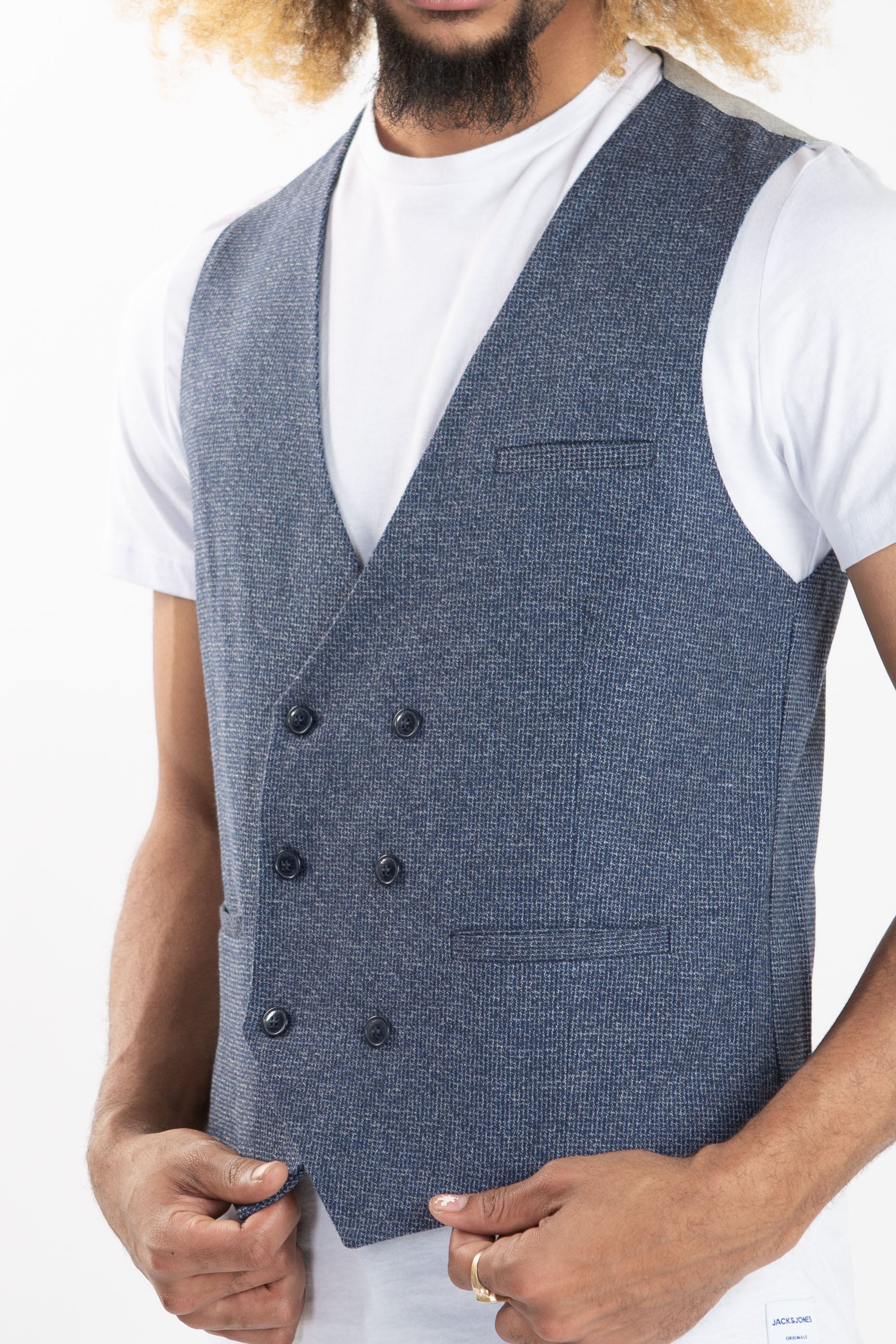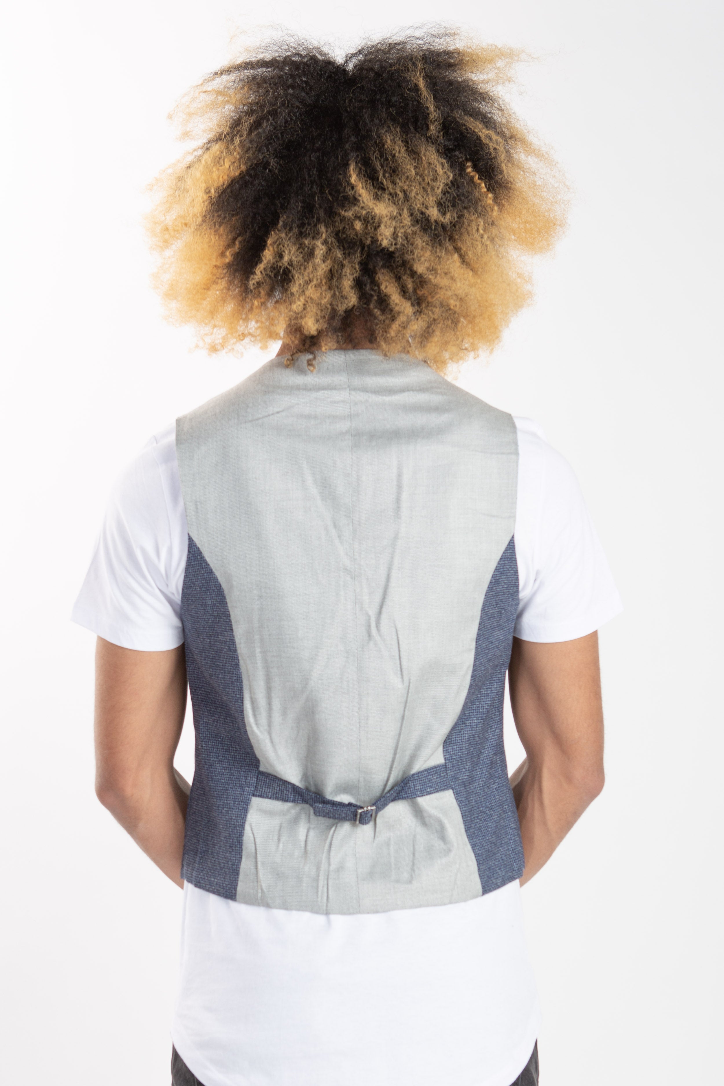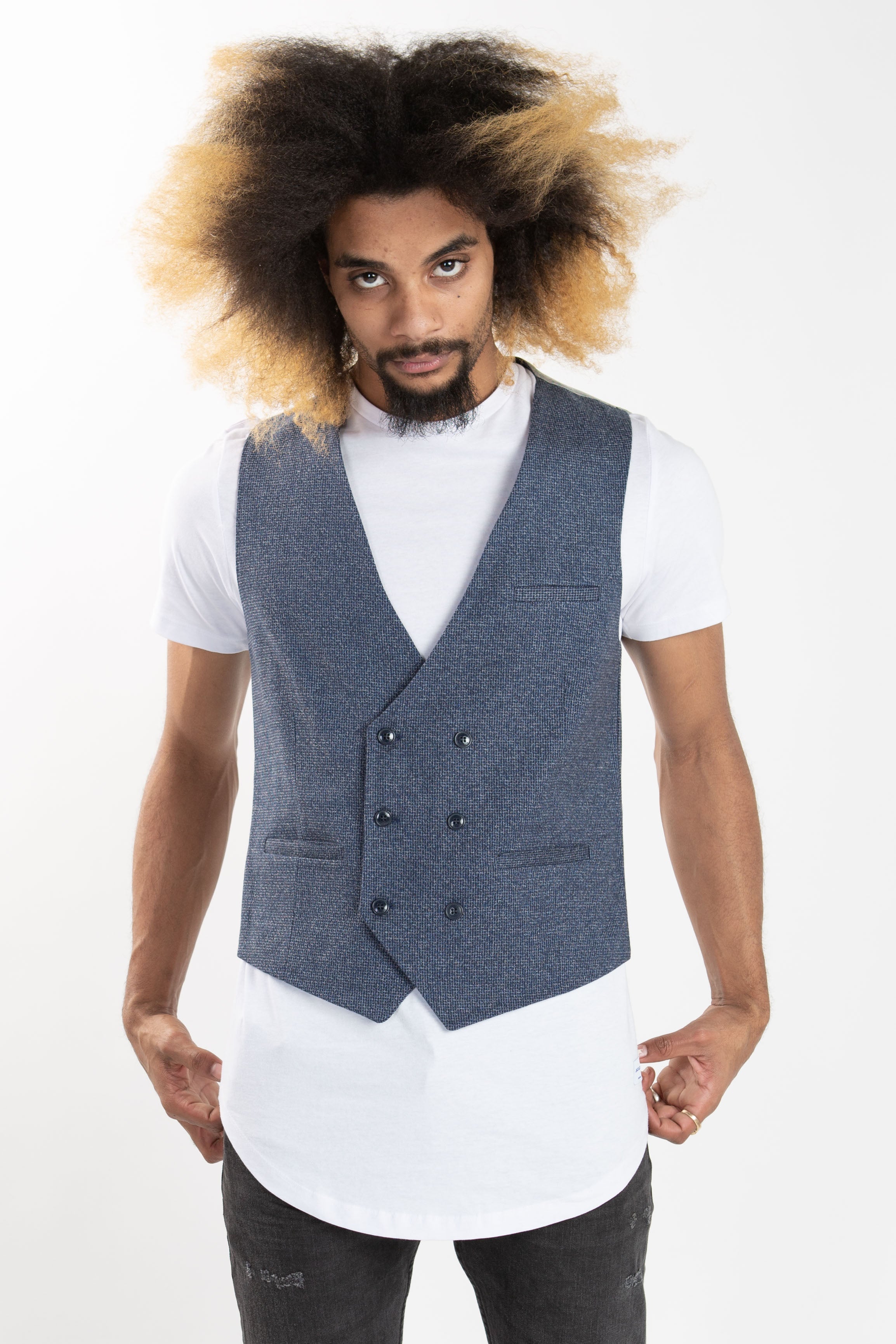 Fashion vintage sleeveless checked navy vest for men. Slim fit 5 buttons double breasted closure waistcoat. Can be worn over a t-shirt, long sleeve shirt or dress shirt.