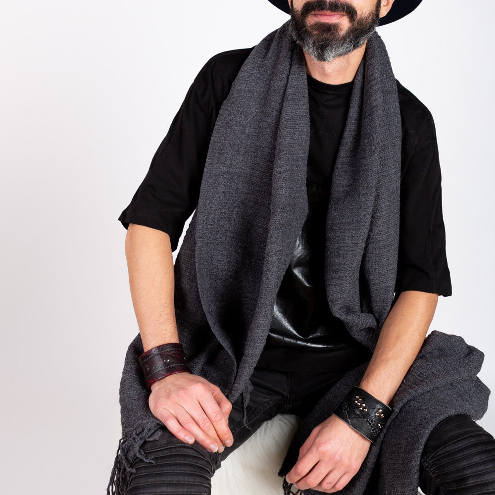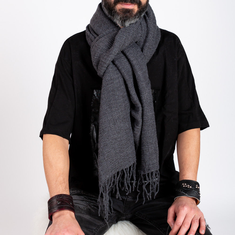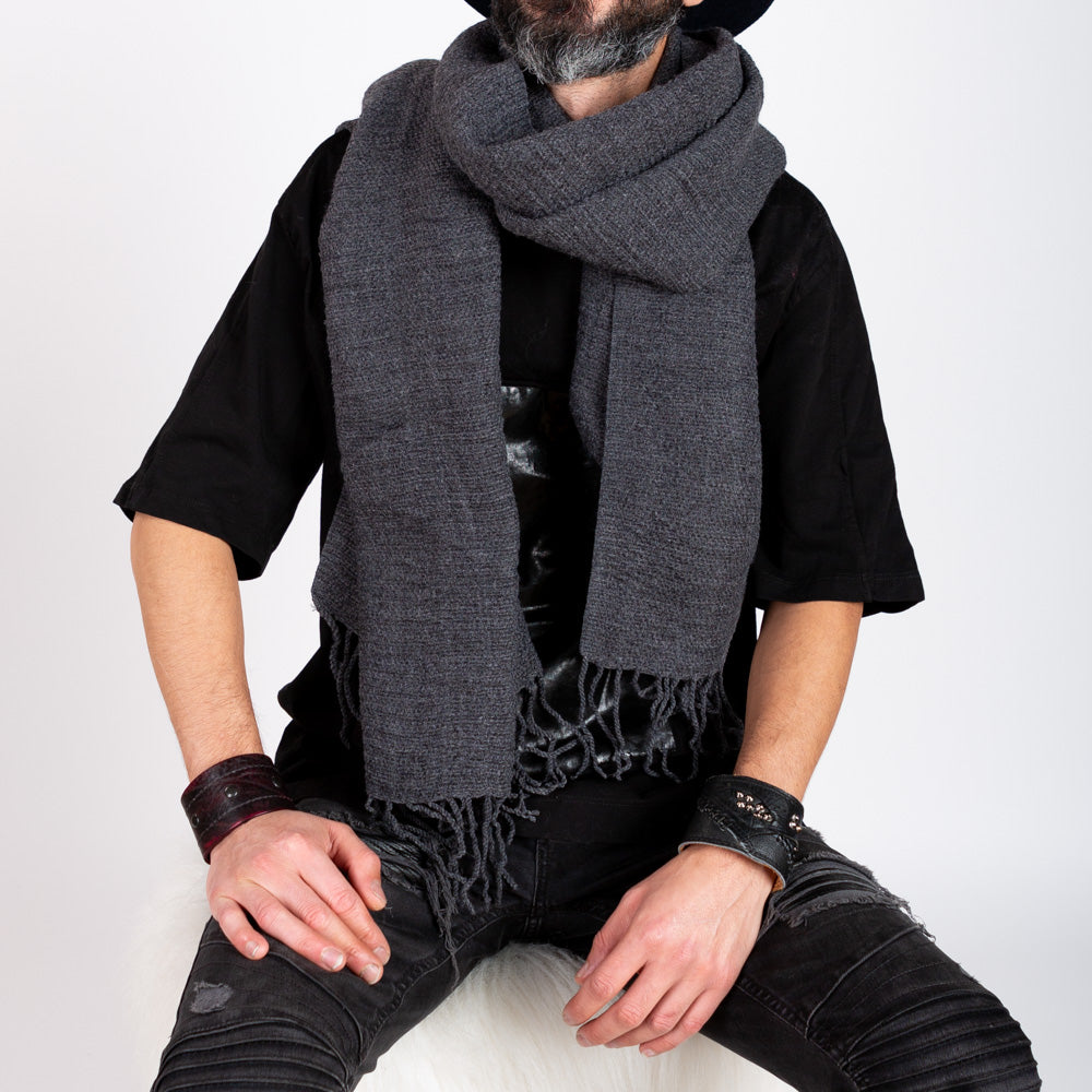 Soft Ridge Textured Tassel Scarf in Charcoal.