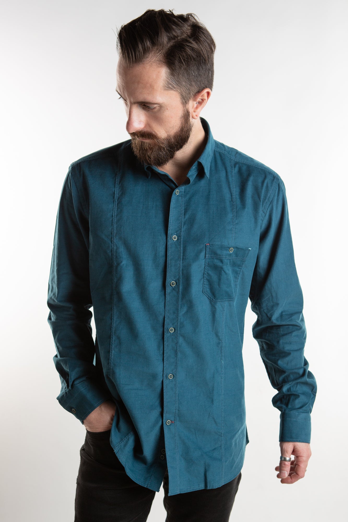 Cotton shirt in Black with white polka dots. This tapered fit dress shirt will take you from your Monday-Friday grind right into your weekend.