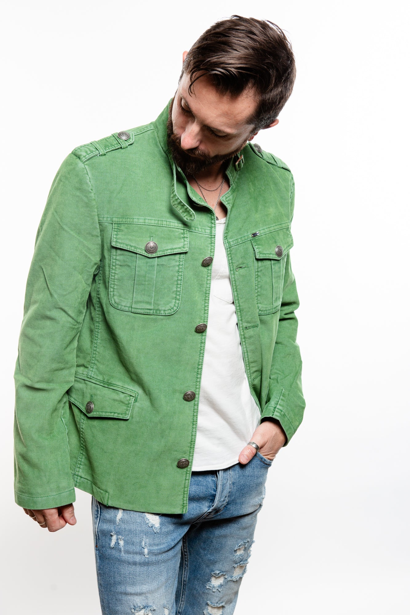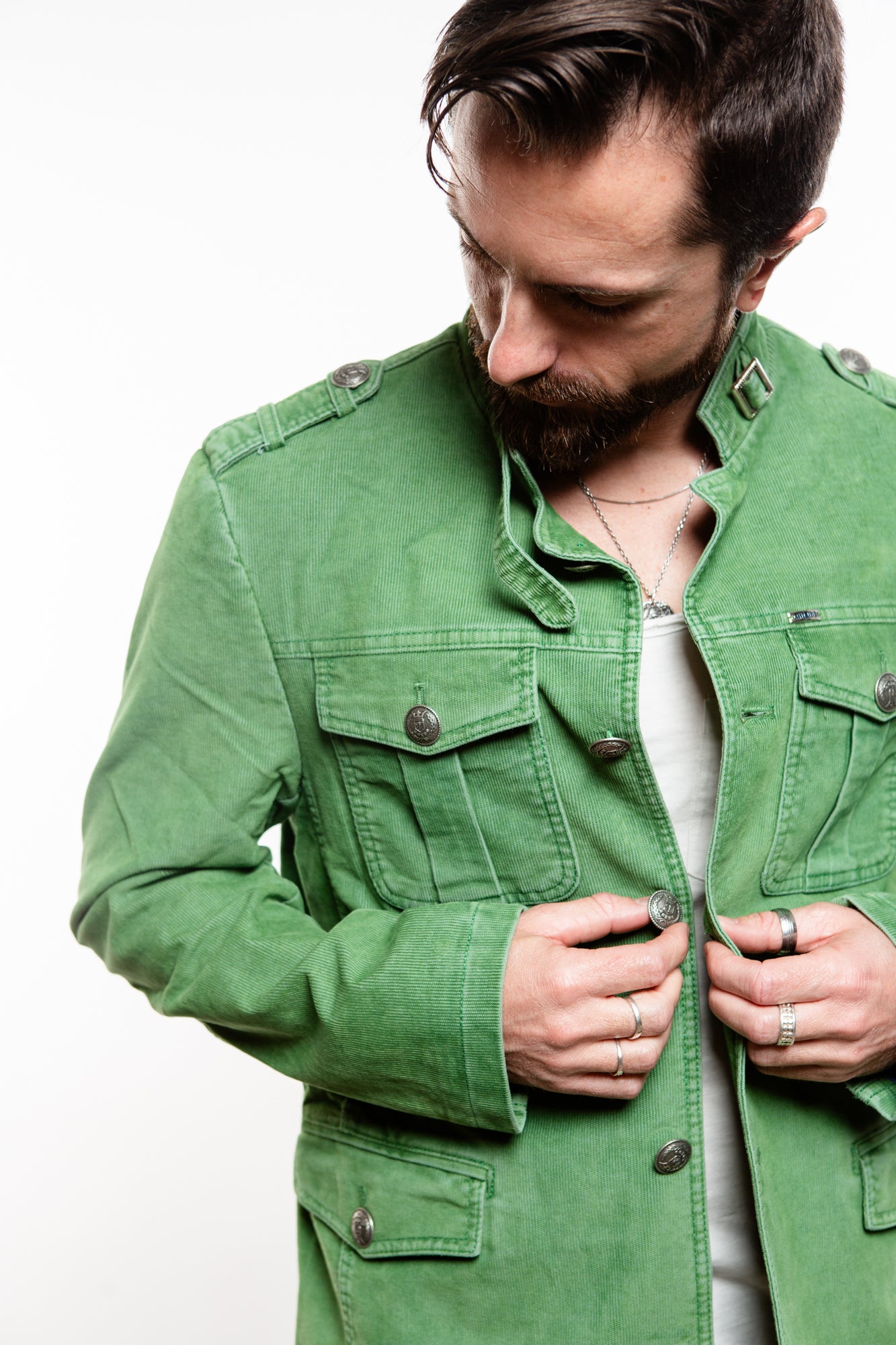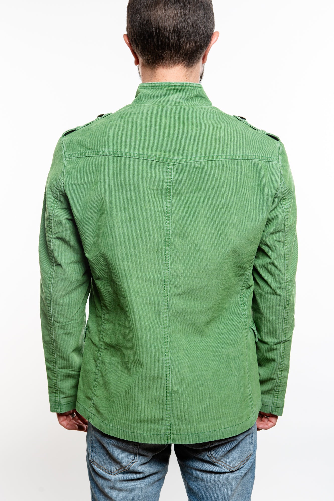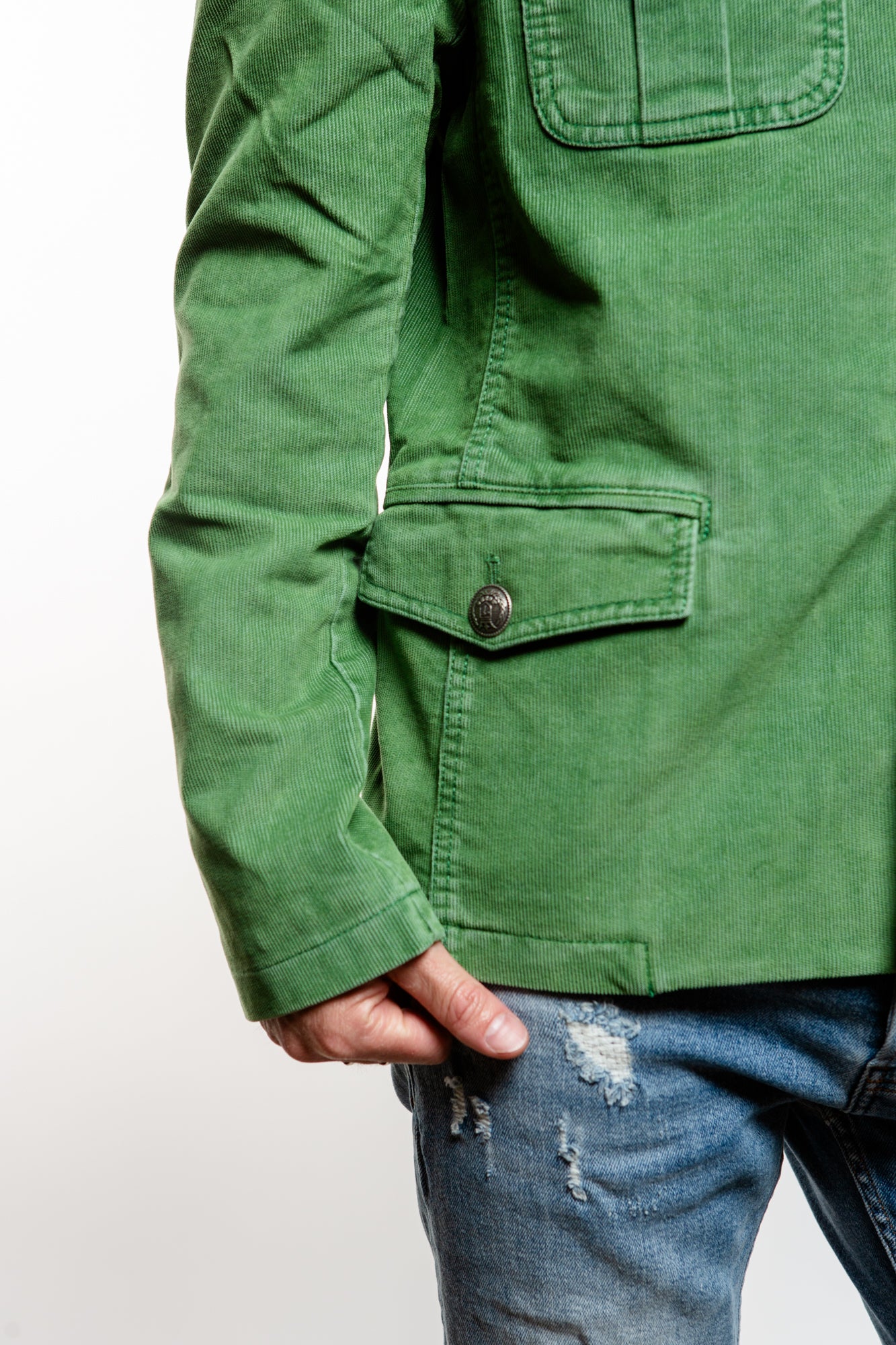 Unleash your adventurous side with the CORDUROY VERDE - GREEN jacket! Designed with a waist height and military style, this jacket is perfect for both casual and dressy occasions. Stay ahead of the style game with this fashion-forward piece. Upgrade your wardrobe now!