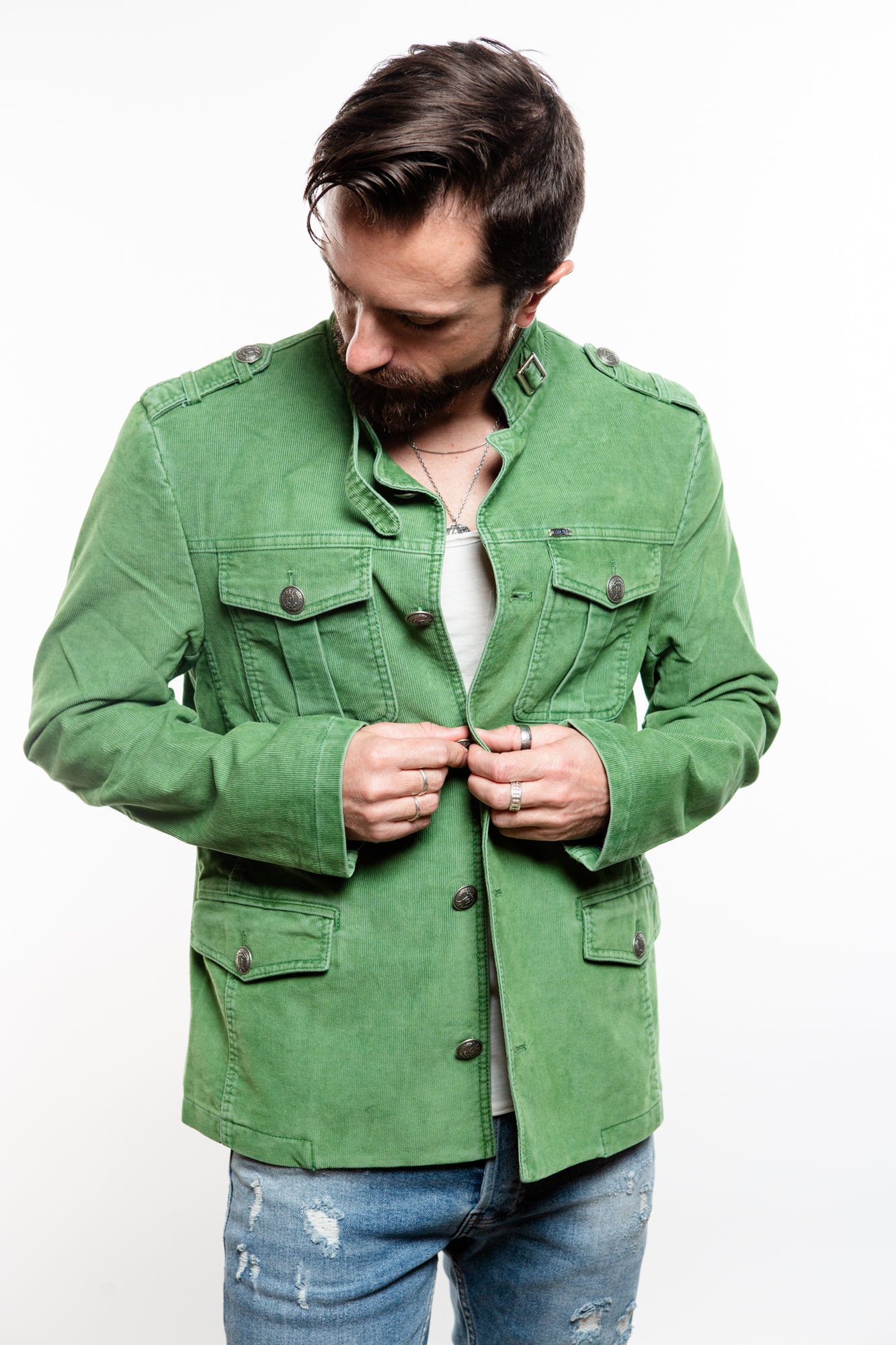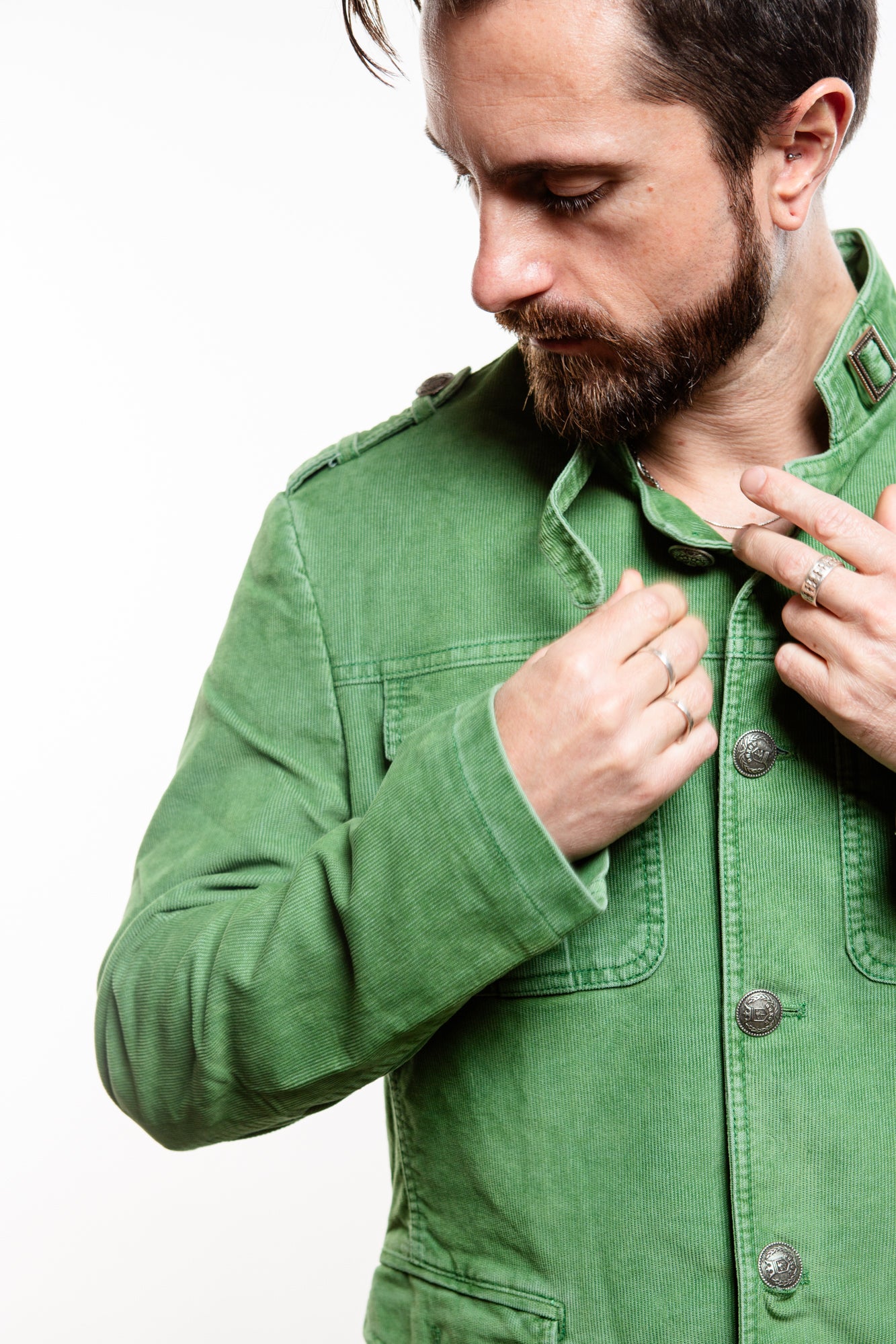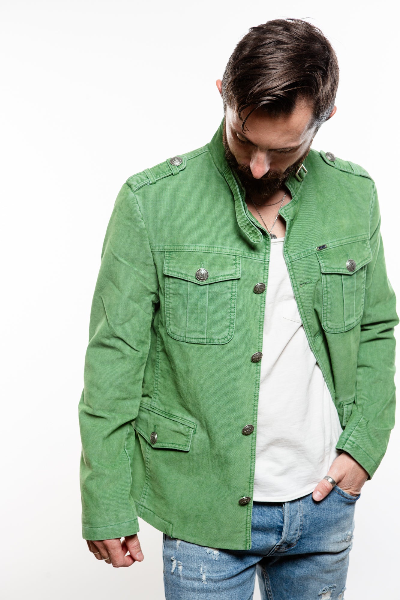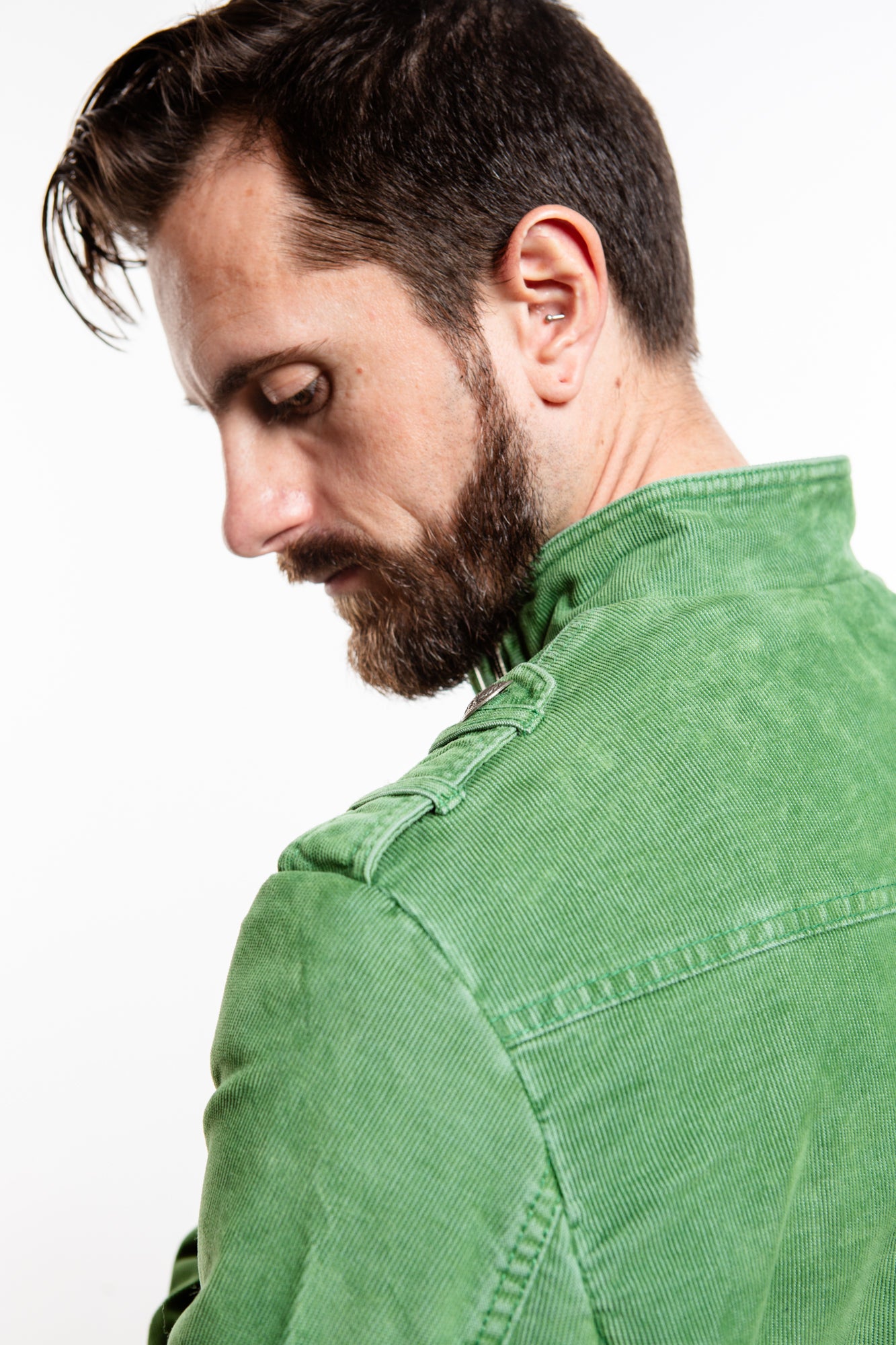 Unleash your adventurous side with the CORDUROY VERDE - GREEN jacket! Designed with a waist height and military style, this jacket is perfect for both casual and dressy occasions. Stay ahead of the style game with this fashion-forward piece. Upgrade your wardrobe now!