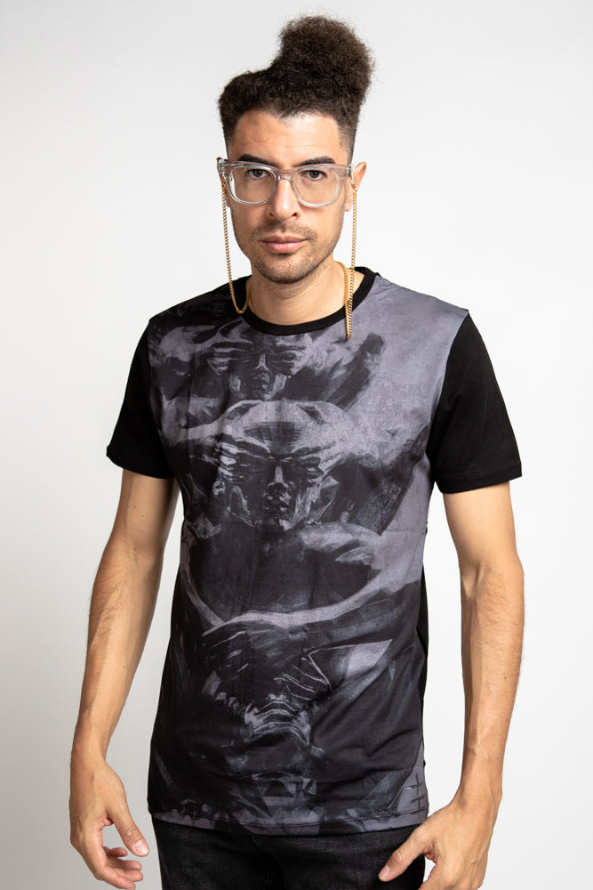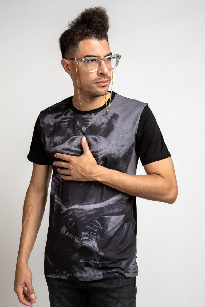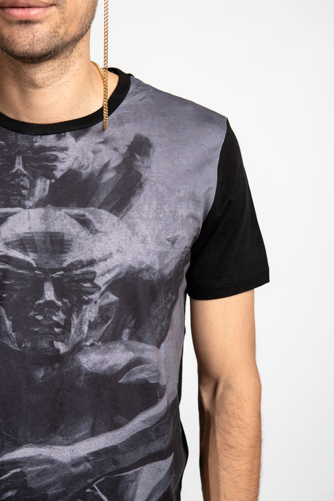 Black T-Shirt with Cover my face print in Black and grey.