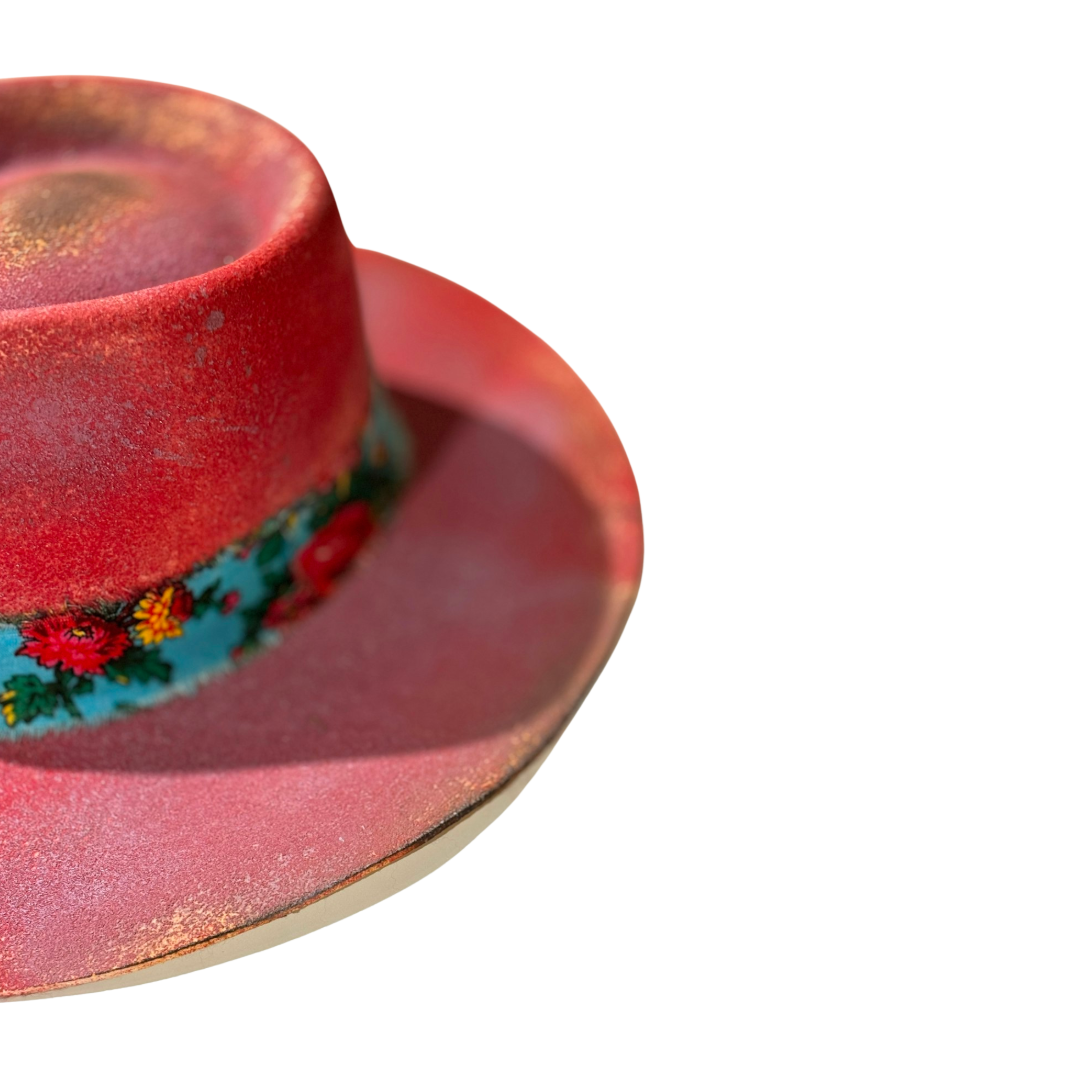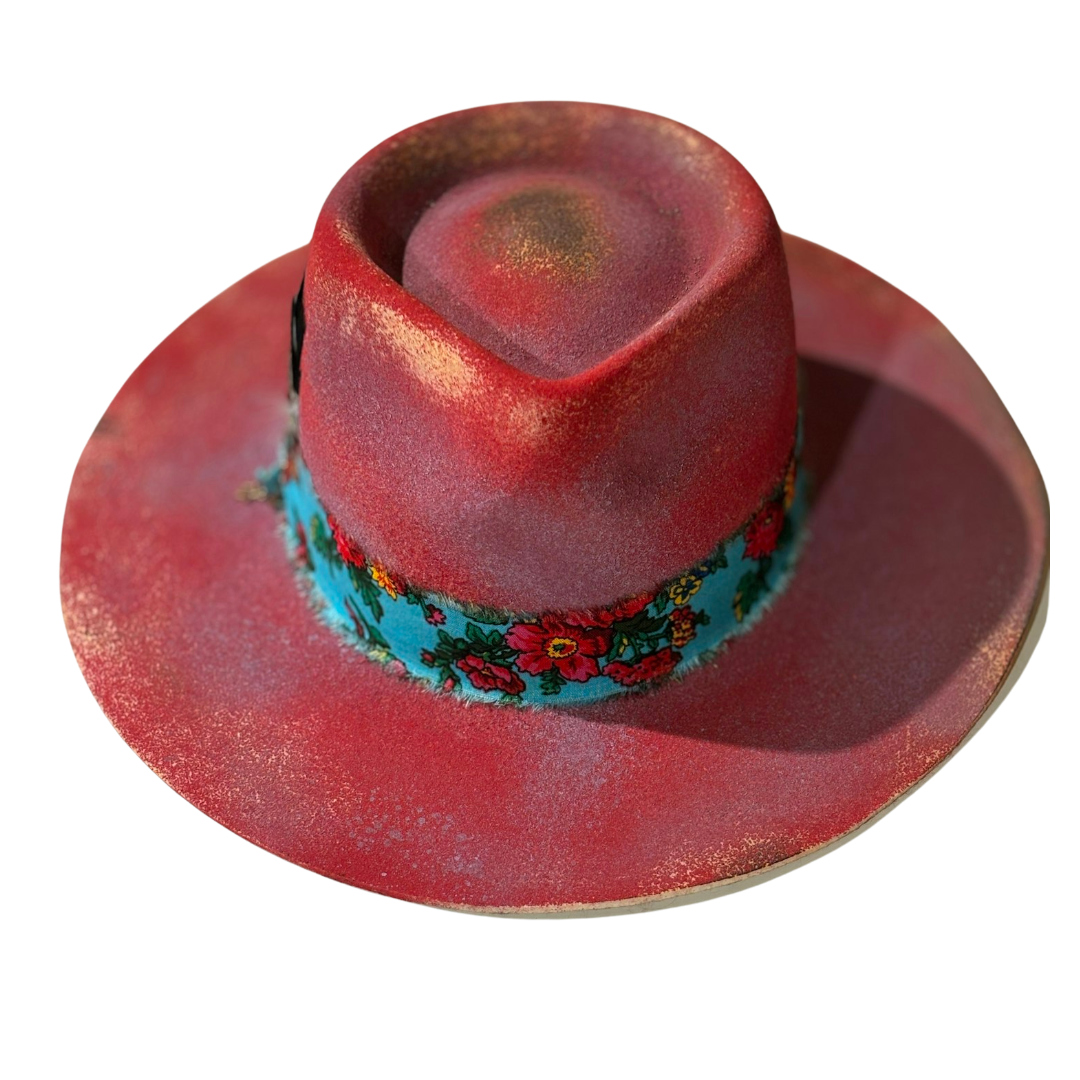 Elevate your style with our Custom Fedora - Atish. Handcrafted from Australian wool felt in Vancouver by Ashtee Hats, this Wide Brim Fedora boasts one-of-a-kind colors and boho-inspired distressed details. Make a statement in this exclusive piece.