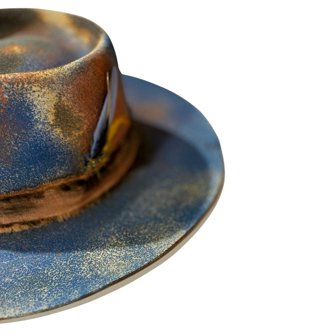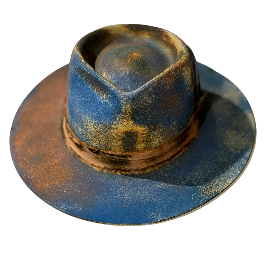 Elevate your style with our Custom Fedora - Darya. Handcrafted from Australian wool felt in Vancouver by Ashtee Hats, this Wide Brim Fedora boasts one-of-a-kind colors and boho-inspired distressed details. Make a statement in this exclusive piece.