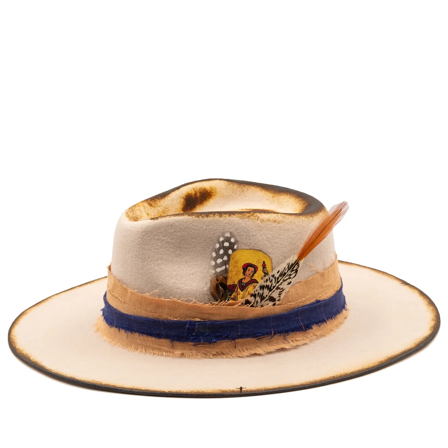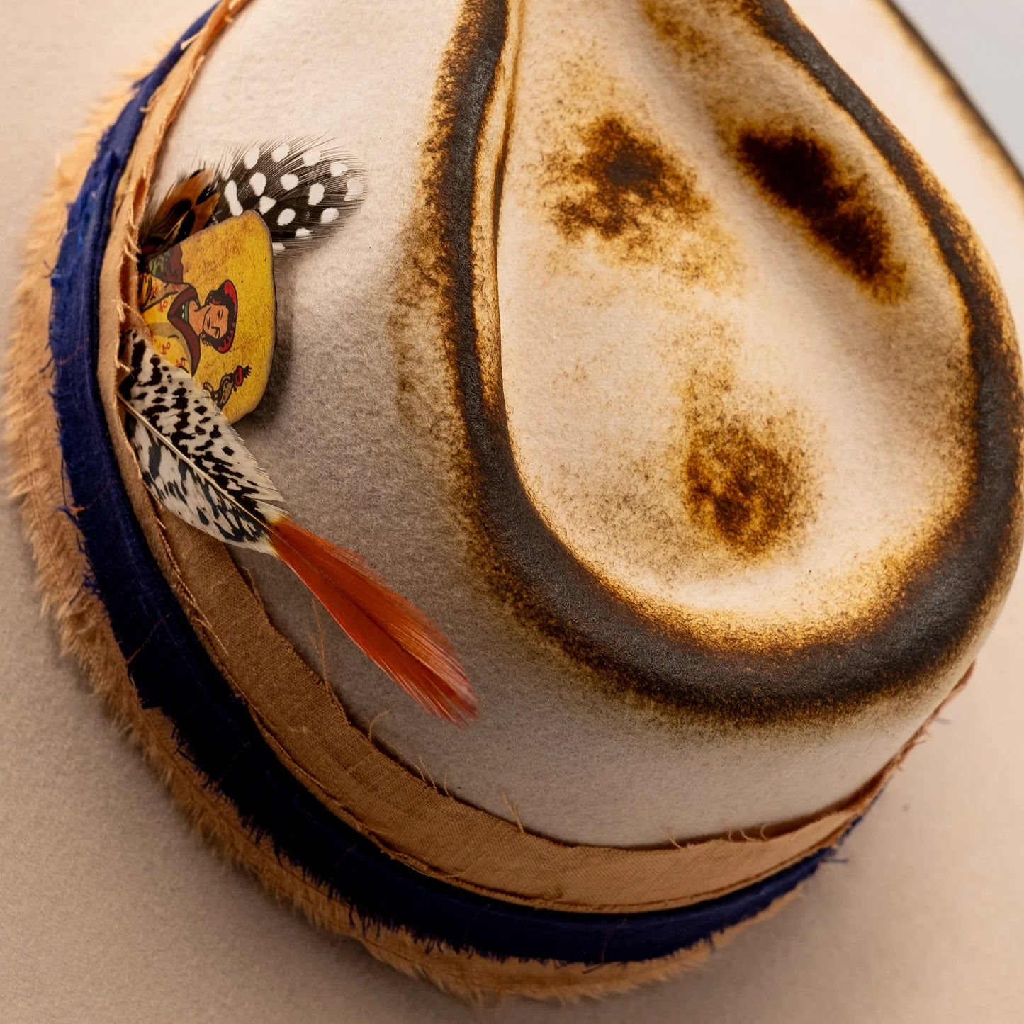 Handcrafted in Australia, Tooti is a high-quality custom fedora made from 100% wool felt. Its unique burnt hat and special feather add a touch of character to this classic design. With a 3" brim size, Tooti offers both style and functionality to keep you looking sophisticated on sunny days.