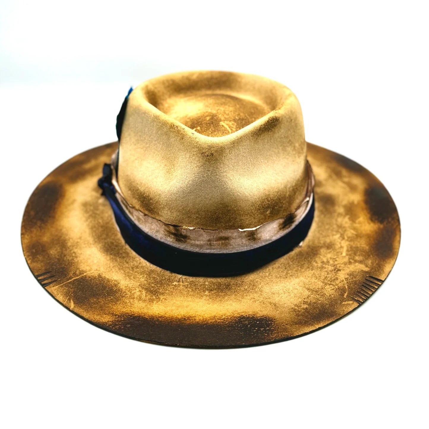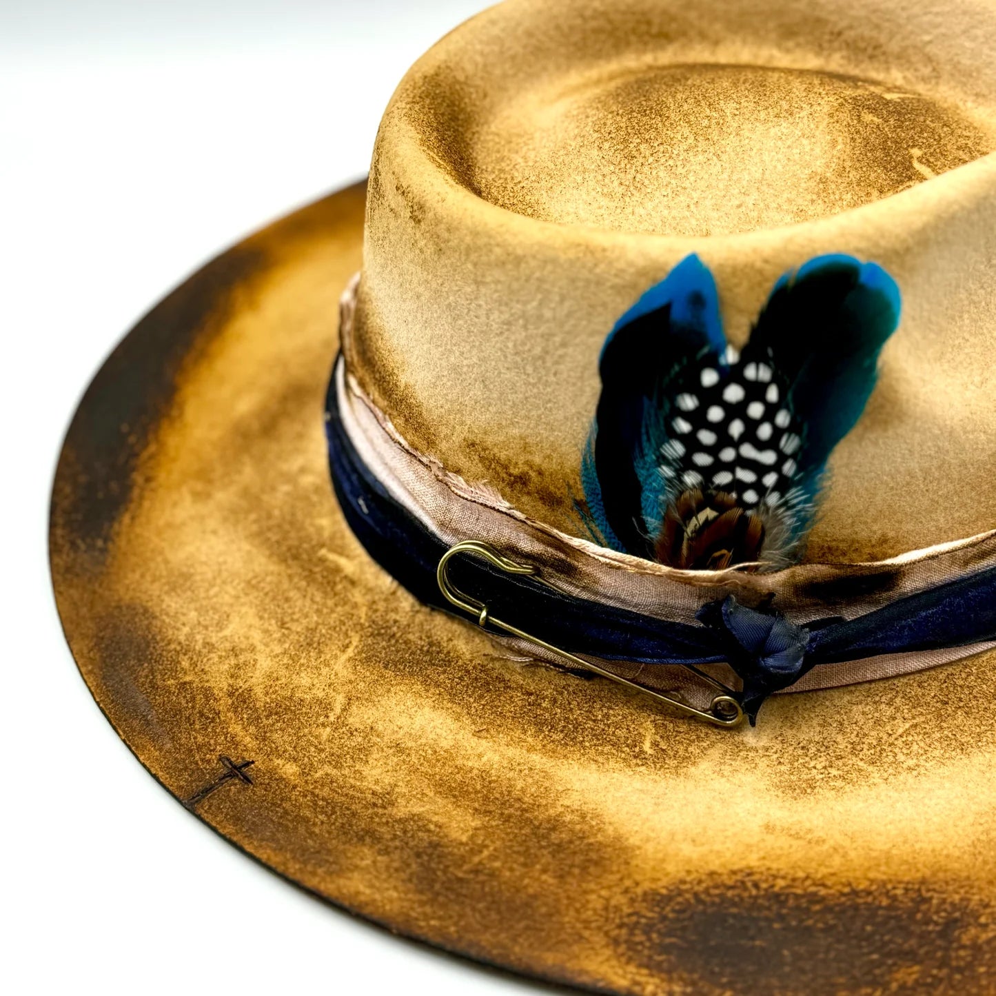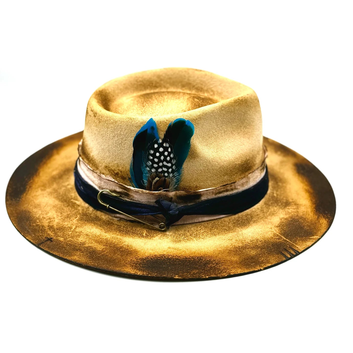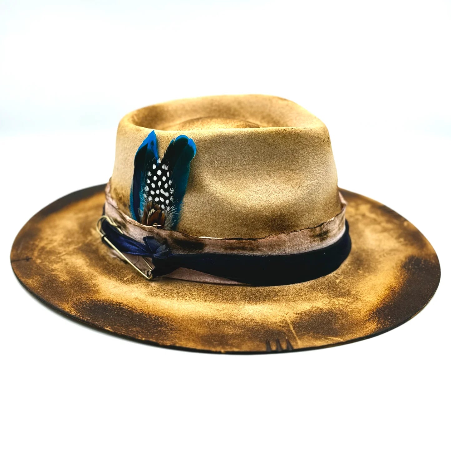 As an expert in the hat industry, we present the Custom Fedora - Yaghi. Made locally with 100% Australian Wool Felt, this hat offers superior quality and warmth. Its special feather adds a unique touch to its 3" Brim size. Available in a burnt natural colour, make a statement with this stylish and sustainable choice.