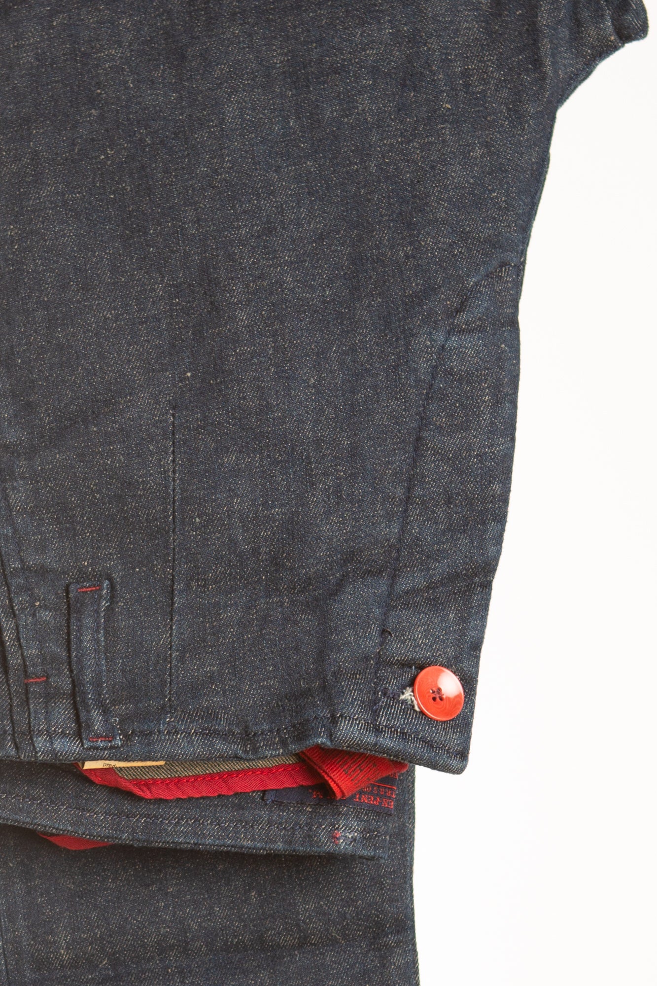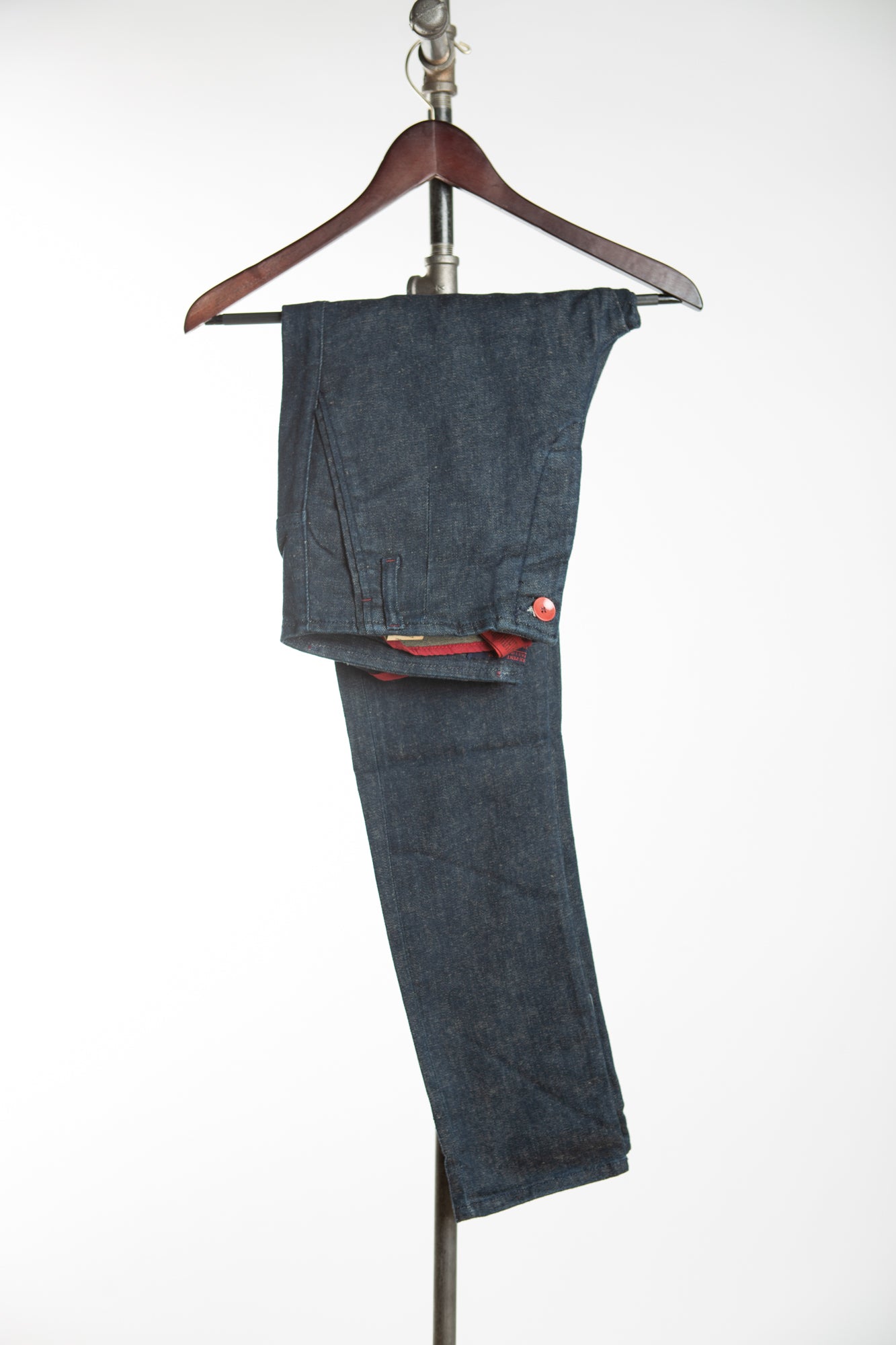 These stretch 5 pocket jeans feature a tapered fit, button fly and closure with side slit pockets and welt back pockets.