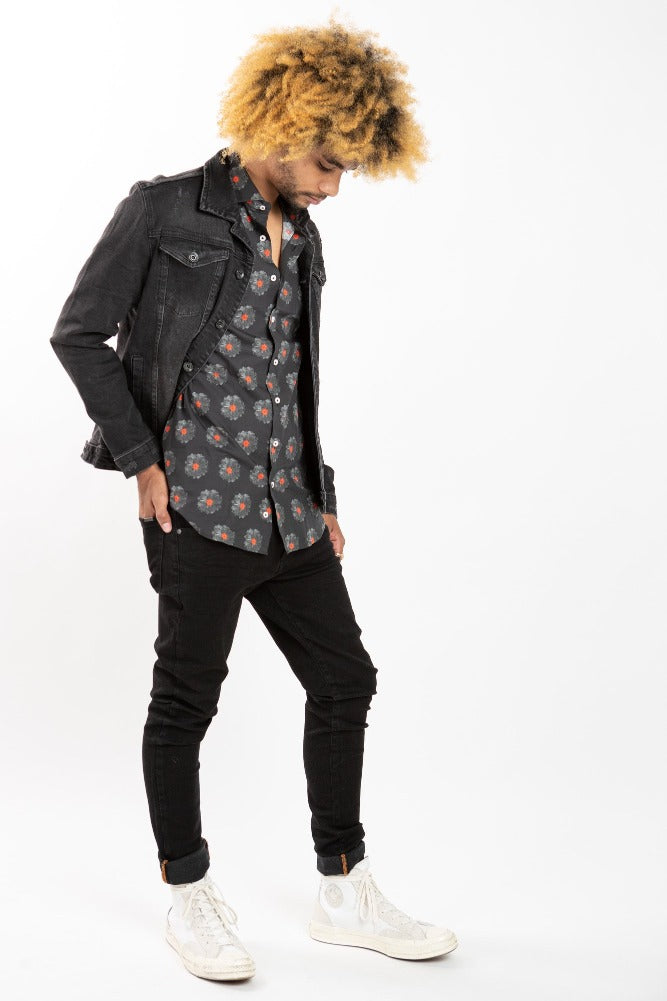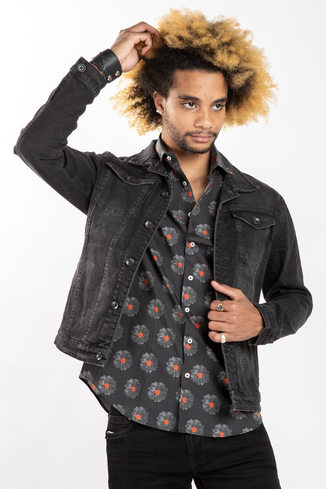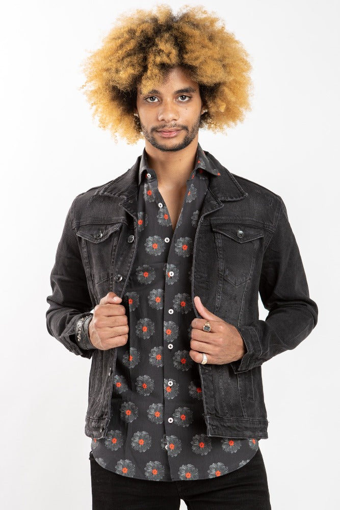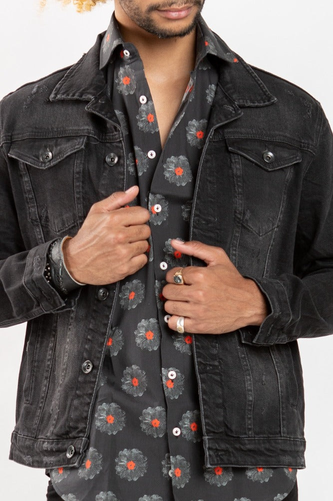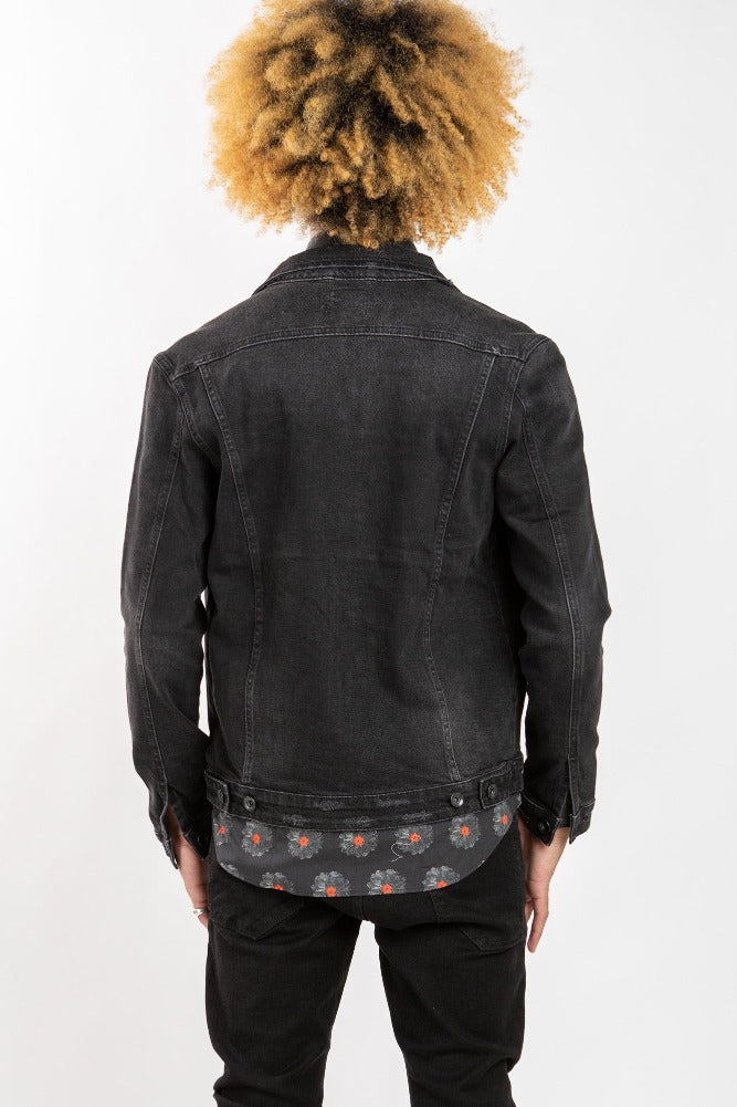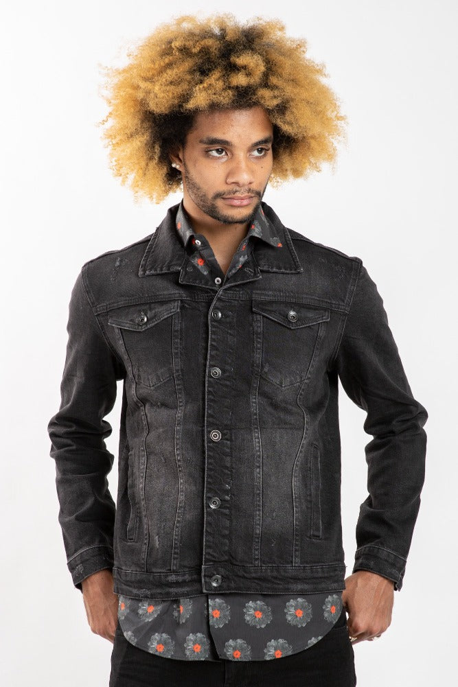 This black denim jacket will take you from spring to fall. Great staple for any man's closet. Can be paired with literally anything