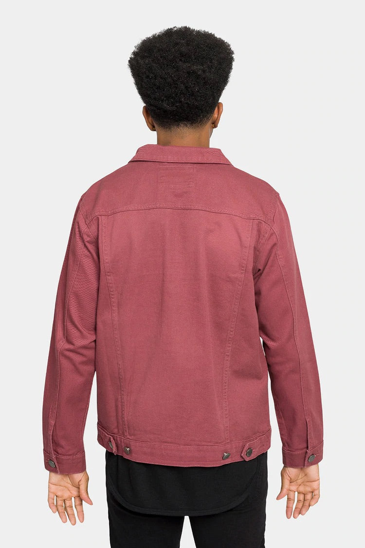 Men's denim jacket in brick colour. An original piece to add to your wardrobe.