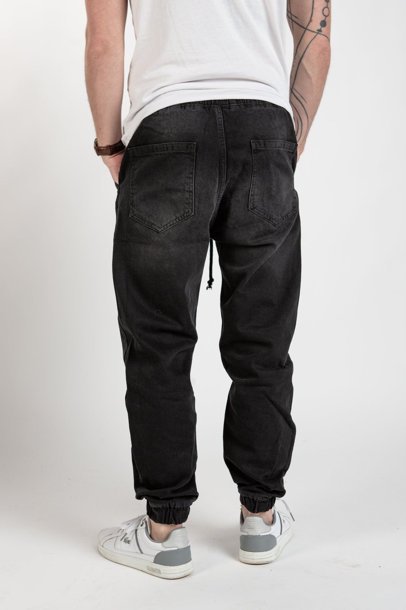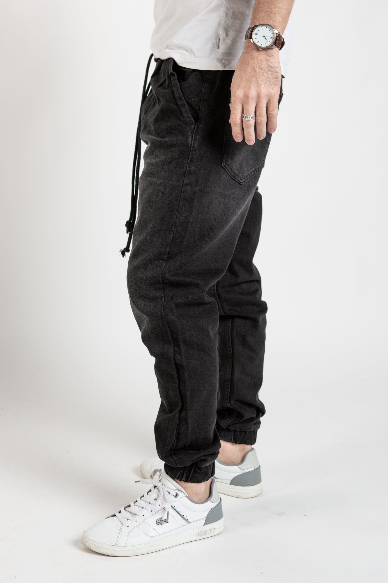 Elevate your casual everyday look with this classic DENIM JOGGER - BLACK. This jogger is crafted with soft denim that will retain its shape and color with every wear. The modern drawstring waist adds a sophisticated touch to this timeless piece that pairs perfectly with day-to-night events.