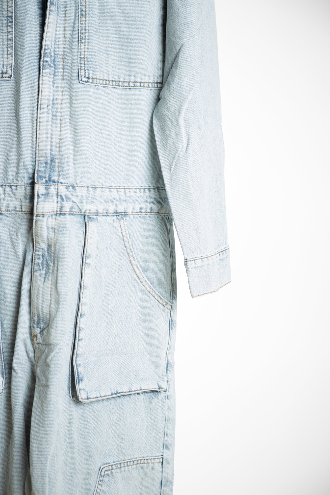 Step out in comfort and style with this premium quality DENIM JUMPSUIT in a vintage wash. Long sleeves and a relaxed fit make it the perfect look for any occasion - will you be the trendsetter?