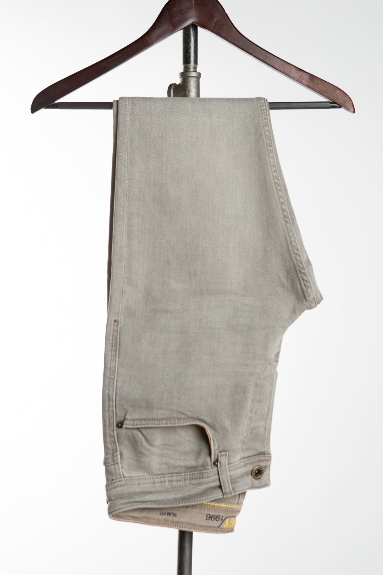Men's slim fit light denim in grey/brown, tone. Super stretchy and comfortable. Perfect pants to dress up or down.