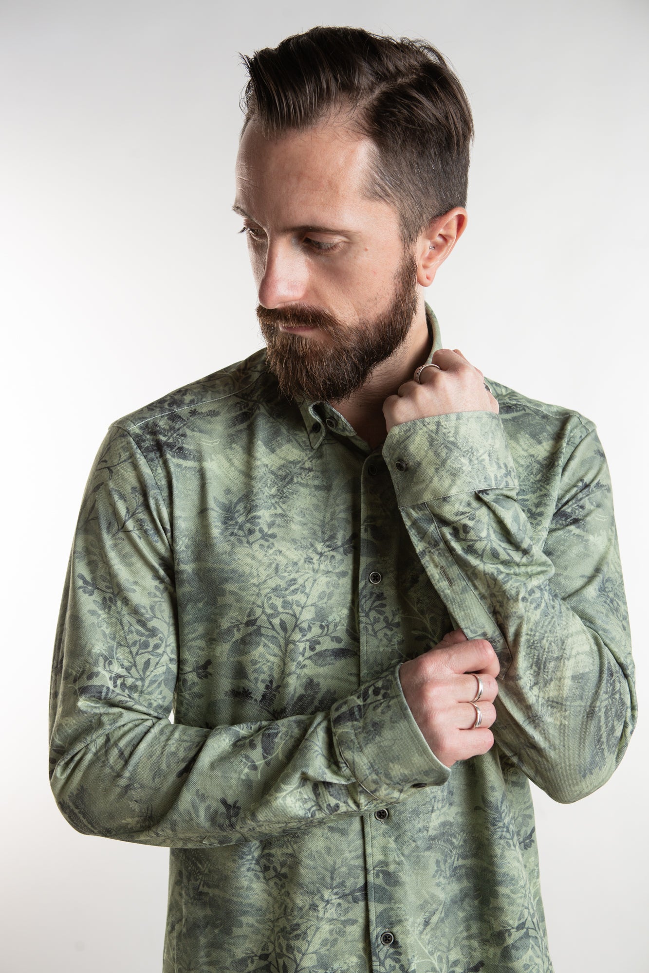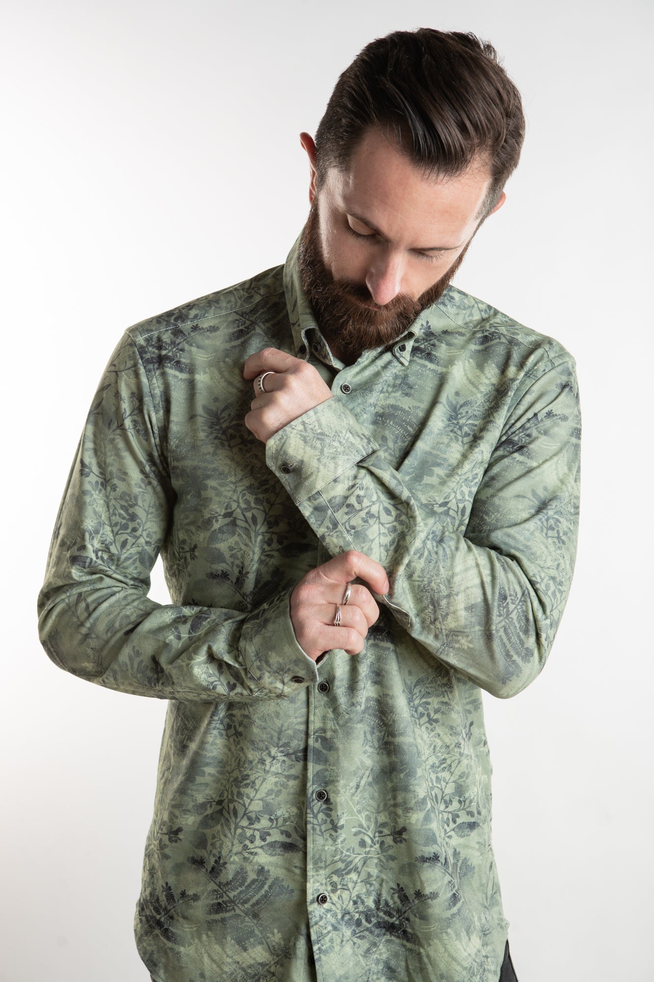 Cotton shirt in Black with white polka dots. This tapered fit dress shirt will take you from your Monday-Friday grind right into your weekend.