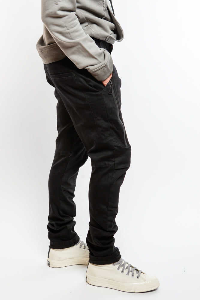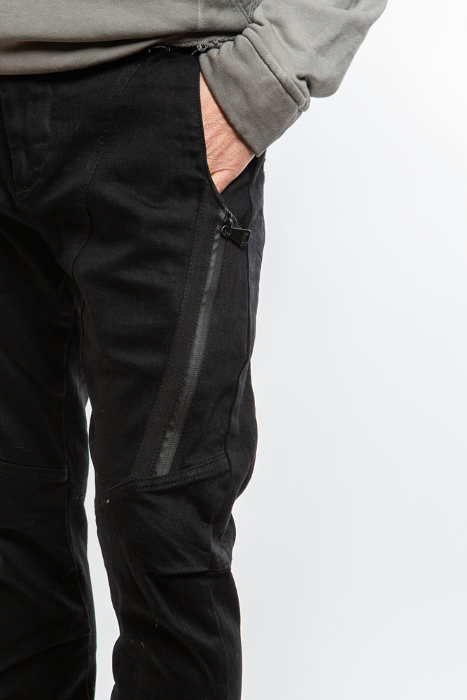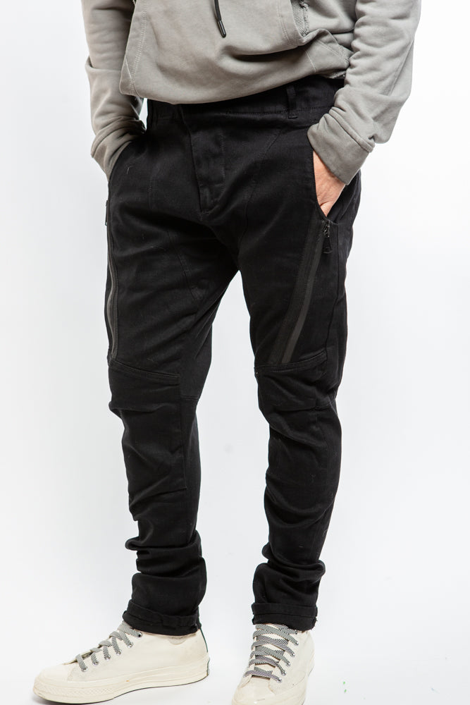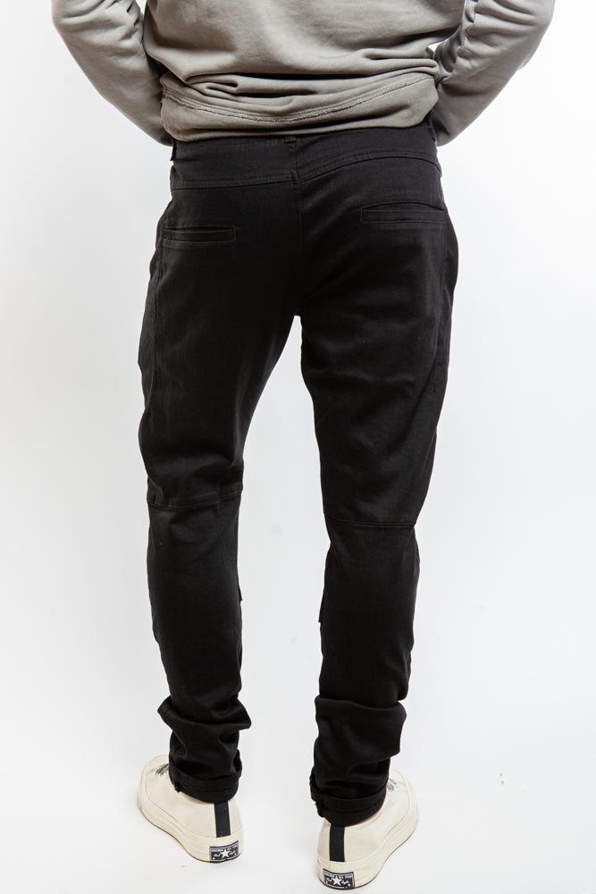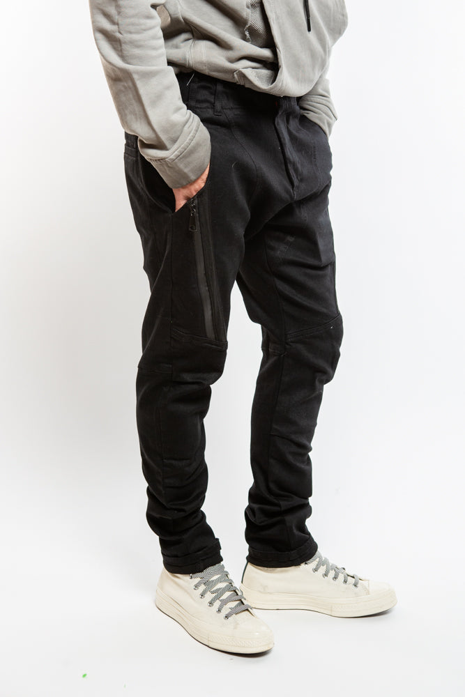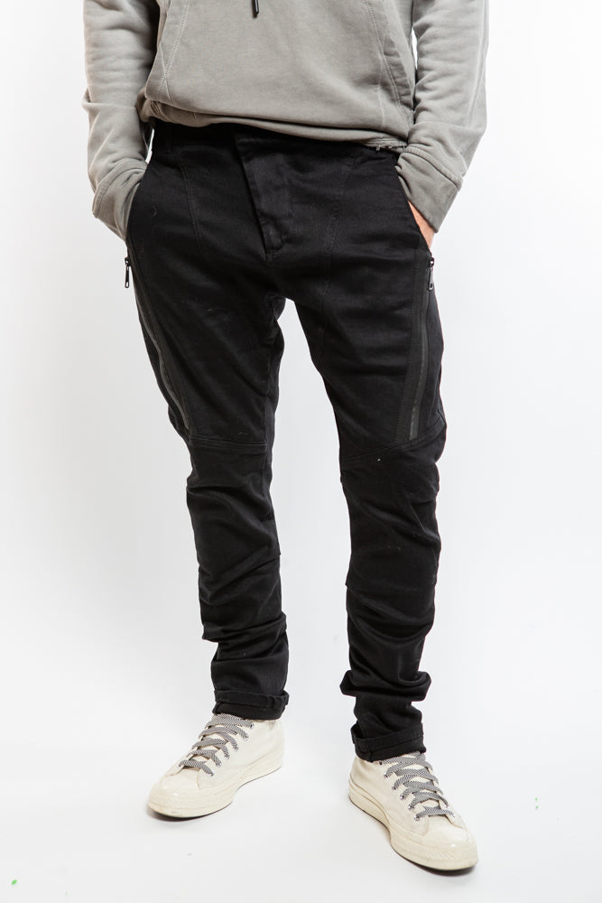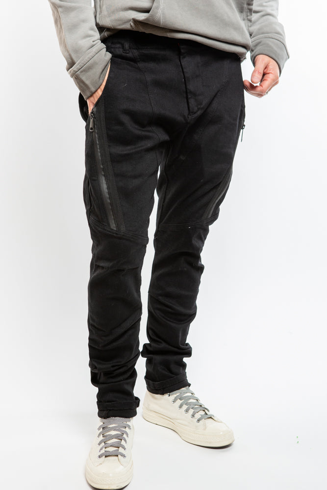Elevate your style with our Edgy Denim PE9391 in Black. Featuring a tapered fit, structured panels, and zipper details, this edgy piece will add a touch of sophistication to your wardrobe. Complete with belt loops and a zipper closure, it's the perfect combination of avant-garde style and function.