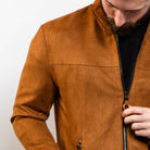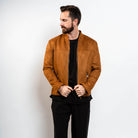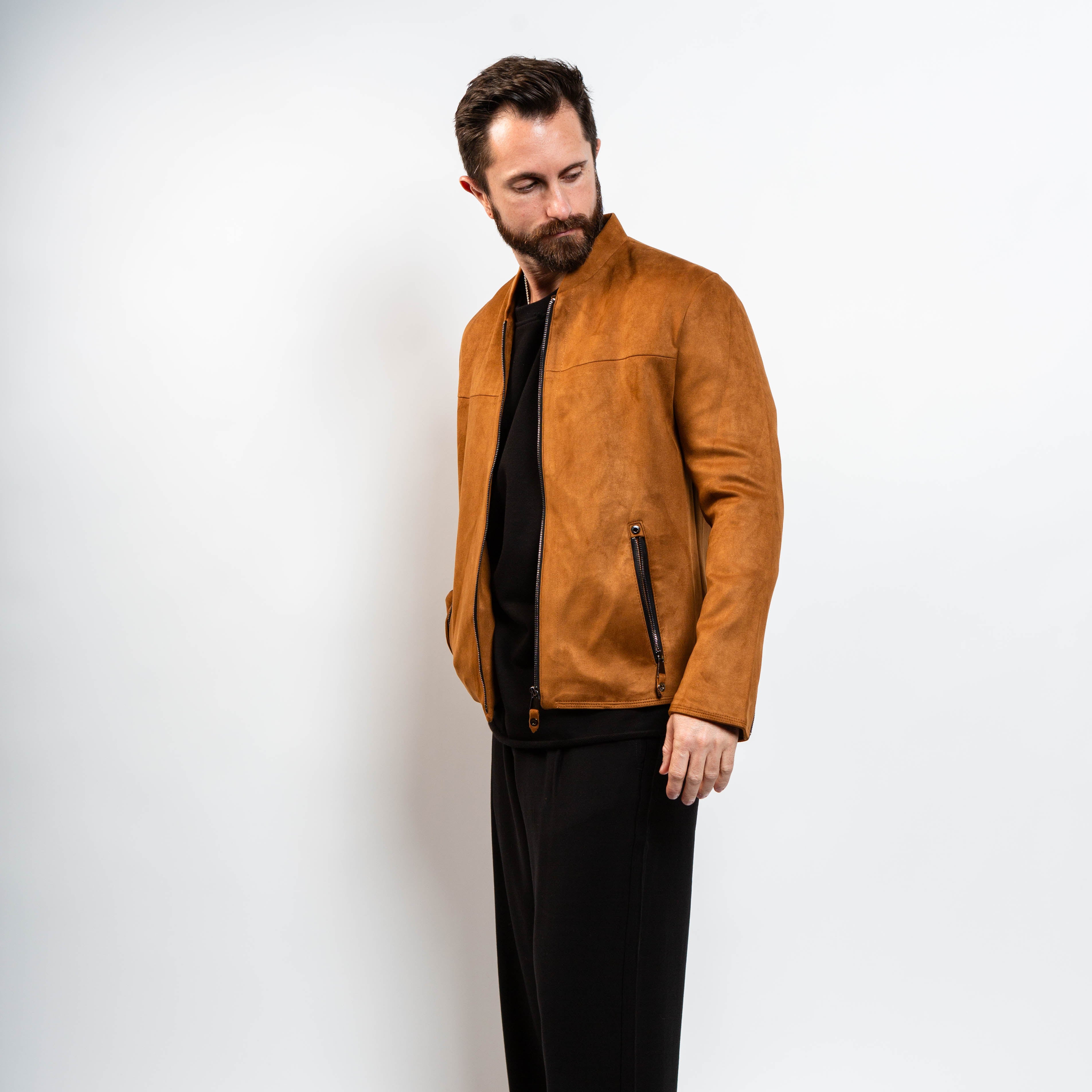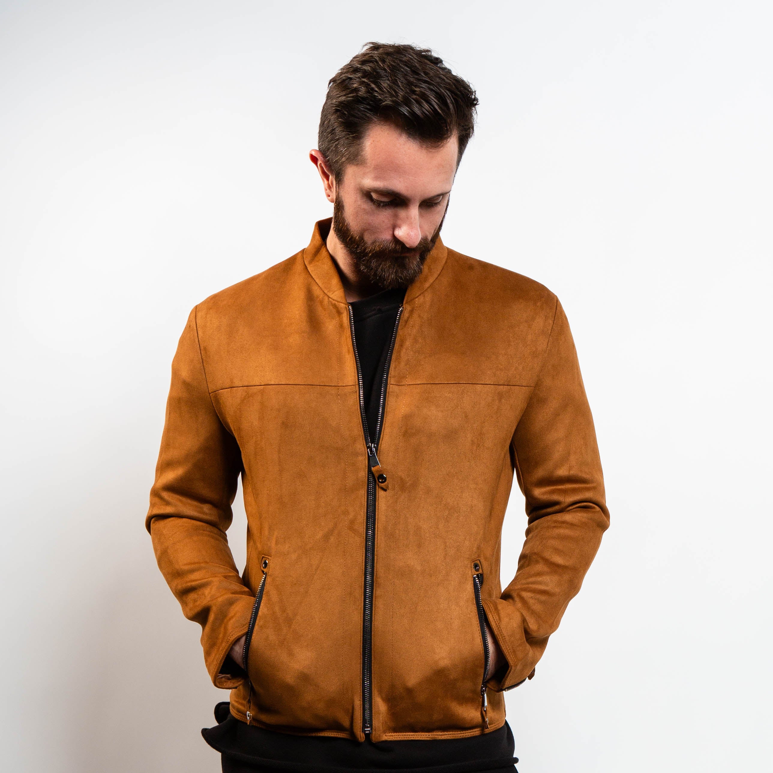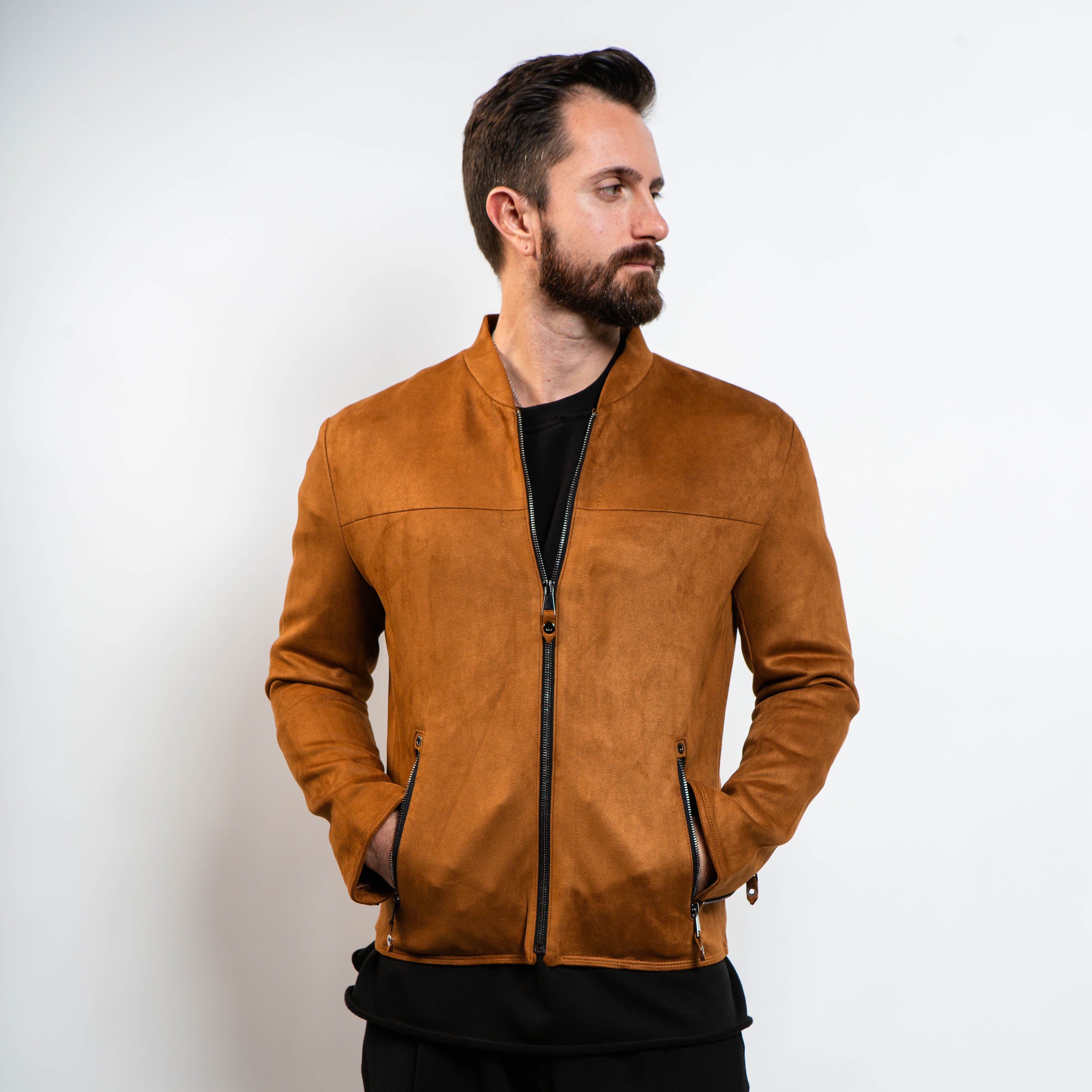 This black moto jacket is made from soft, luxurious faux suede material. It features a stylish stand collar and a convenient front zip up closure. This jacket is the perfect addition to your wardrobe for a stylish and contemporary look.