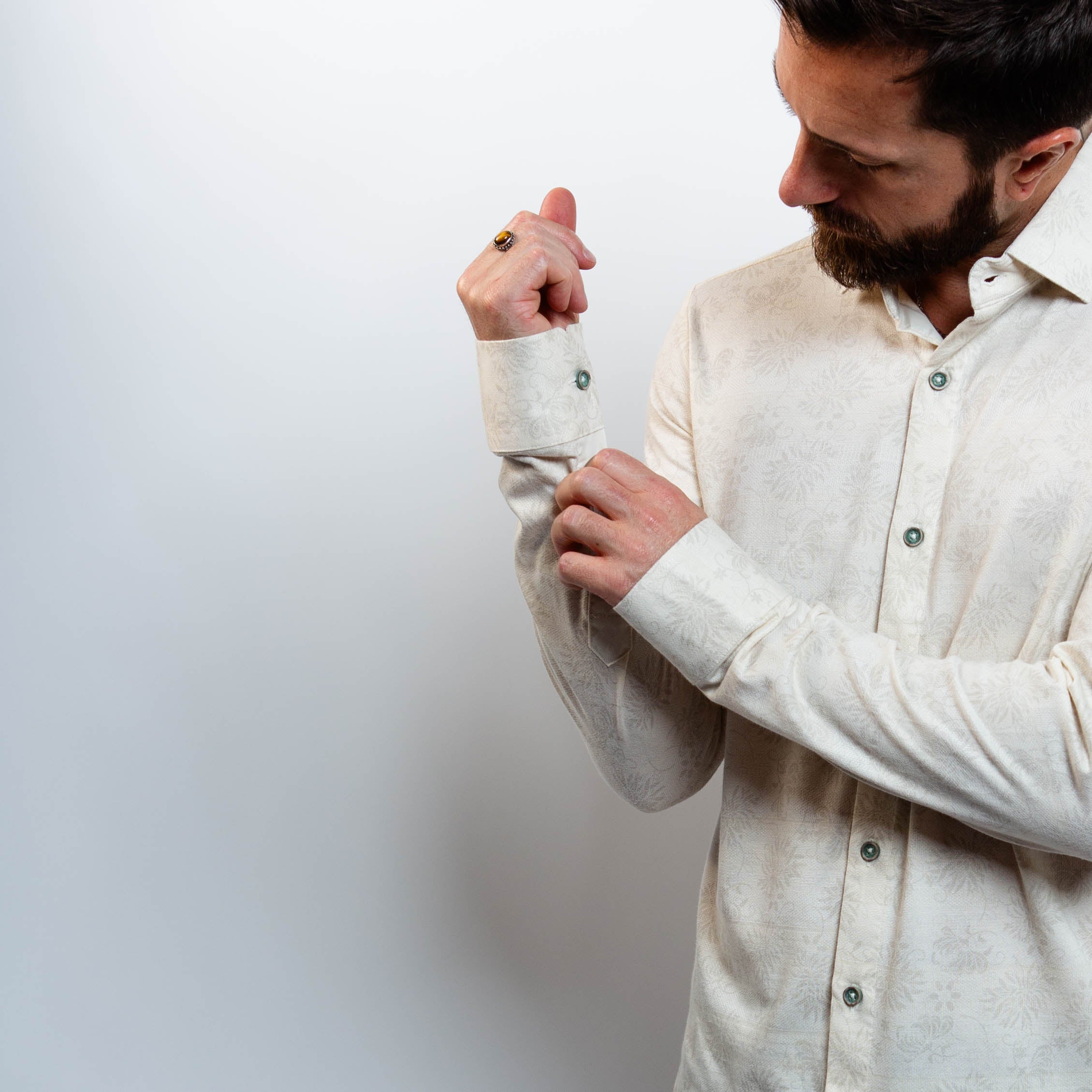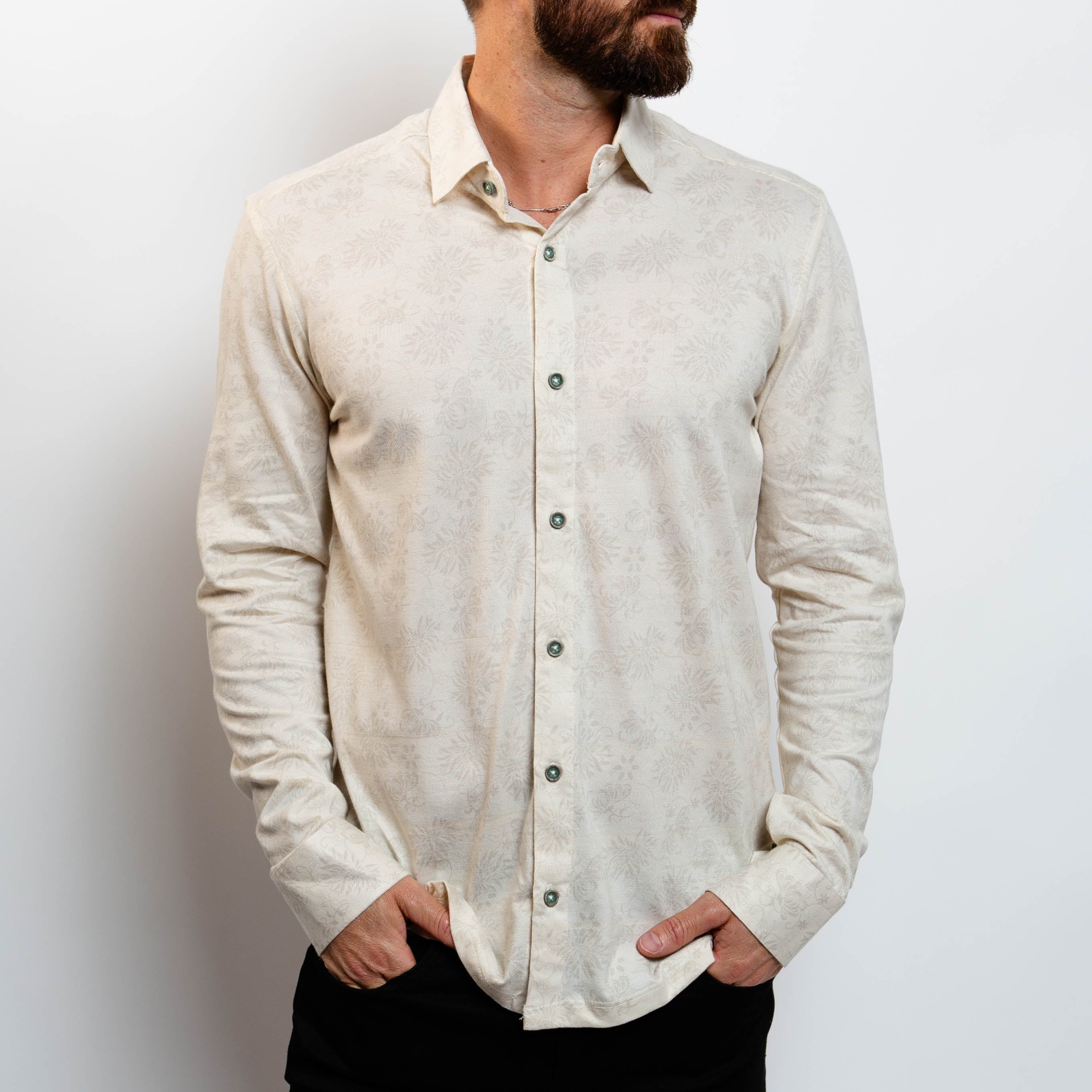 Ivory Shadow Shirt – Tonal Floral Jacquard