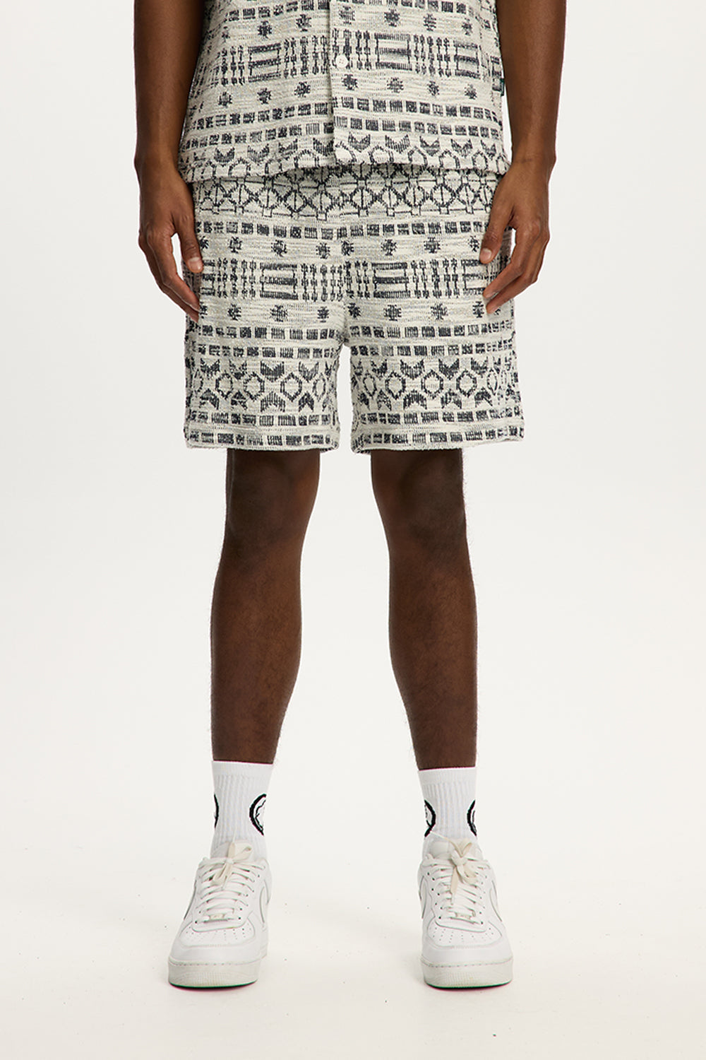 Get ready to make a statement with our Jacquard Tribal Shorts in bold Blue! Made from a high-quality cotton blend, these versatile shorts feature a striking tribal pattern that is sure to turn heads. Perfect for a day out or just lounging around, these shorts offer comfort and style in one package.