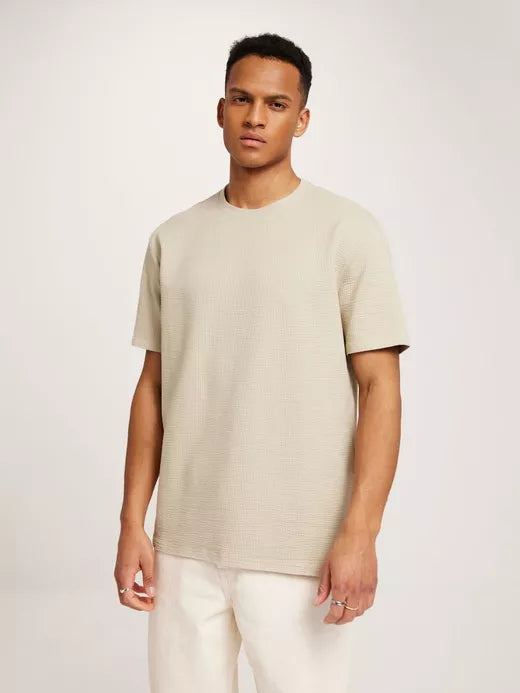 Elevate your style game with the Kian T-shirt in Tan. Designed with a round neckline and short sleeves, this regular fit shirt is perfect for any occasion. Made from natural cotton fibers, it provides ultimate comfort, breathability, and a polished look. Upgrade your wardrobe with this essential piece!