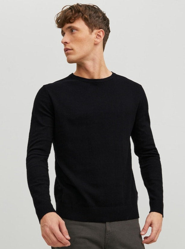 Stay cozy and sustainable in our KNIT CREW NECK SWEATER - Black. Made of a classic quality knit, this regular fit pullover features a round neck and long sleeves for comfort and style. Plus, it's made with at least 50% organic cotton, protecting the environment and your style.