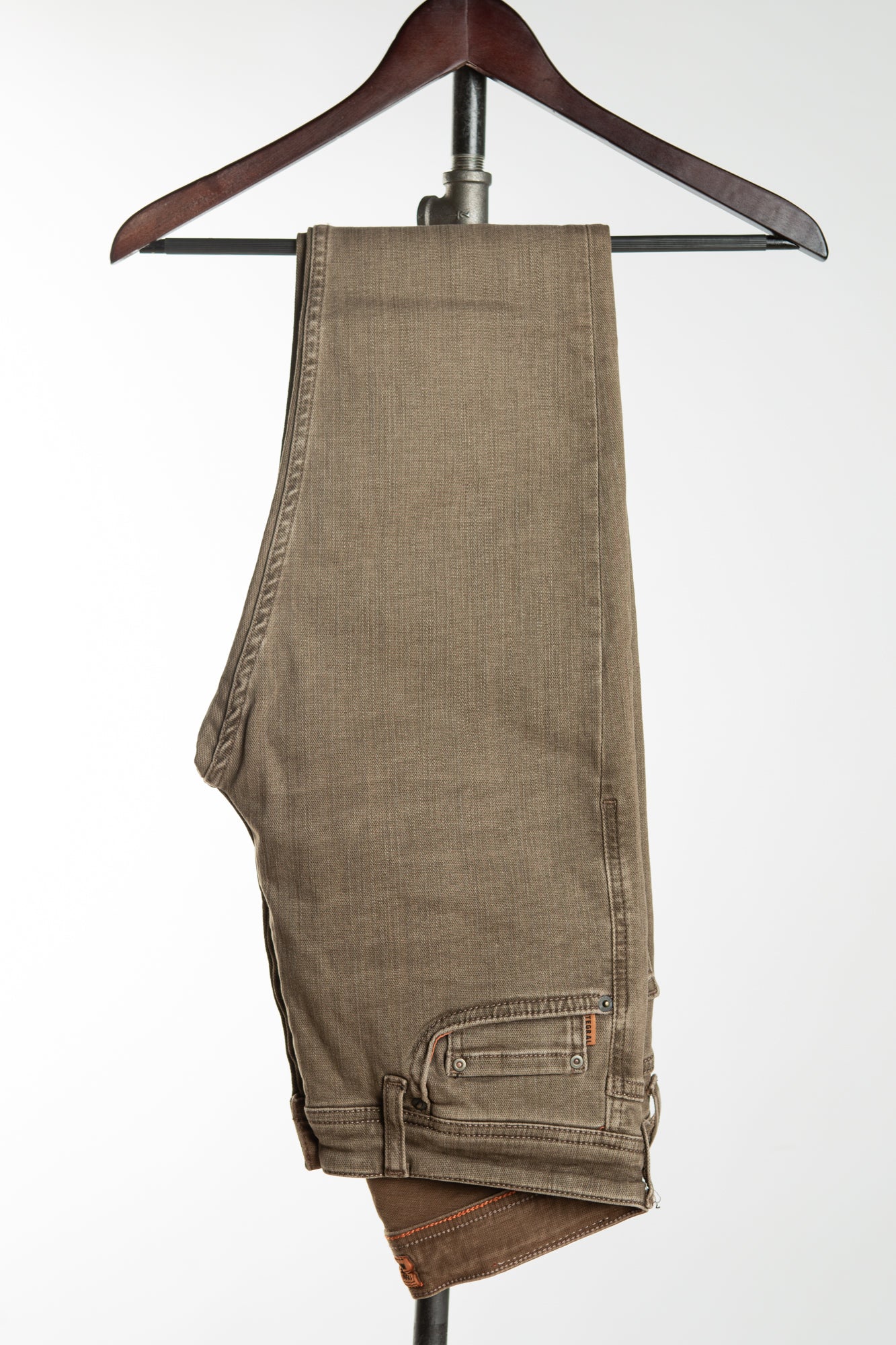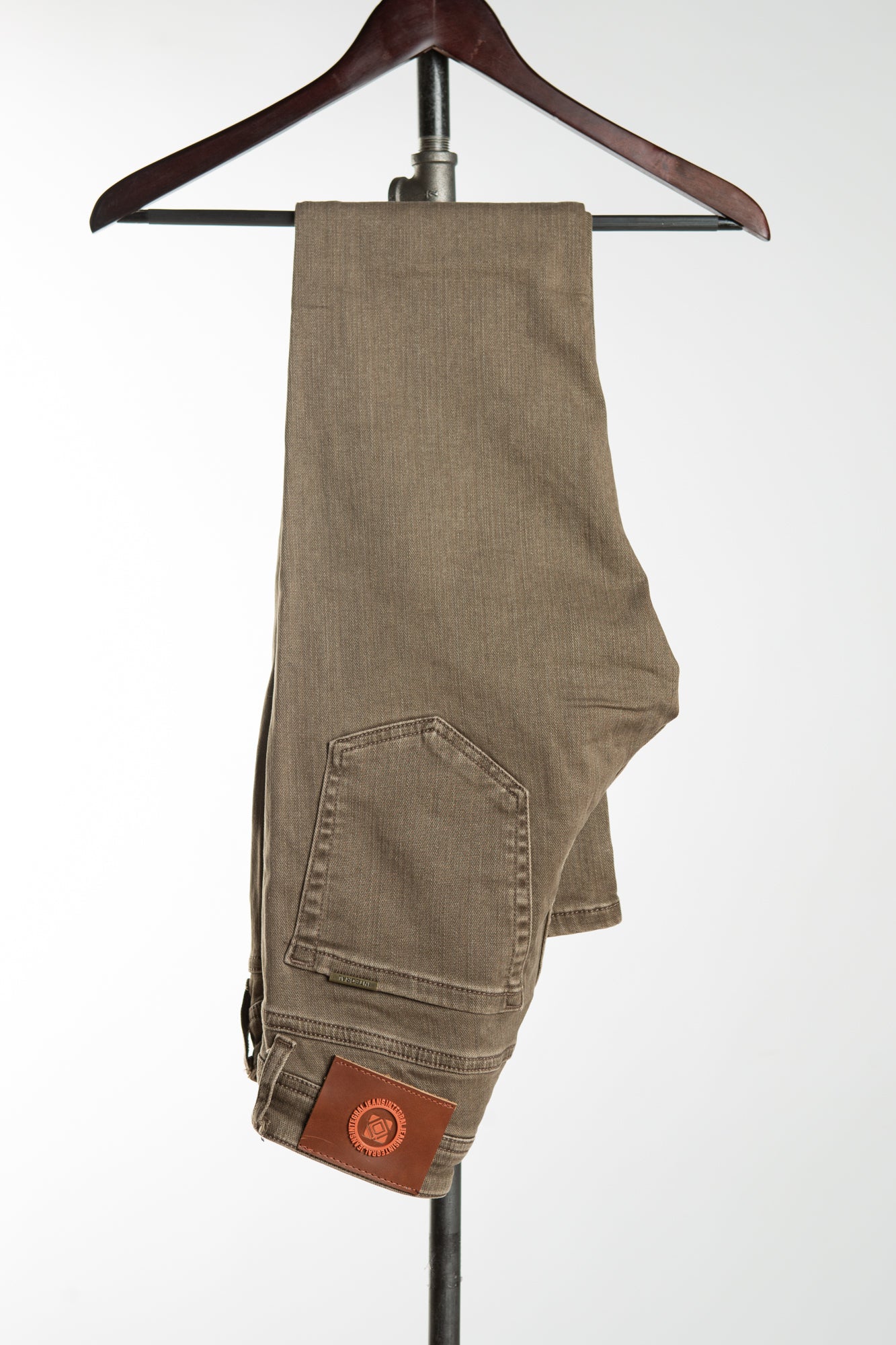Men's slim fit light denim in brown. Super stretchy and comfortable. Perfect pants to dress up or down.