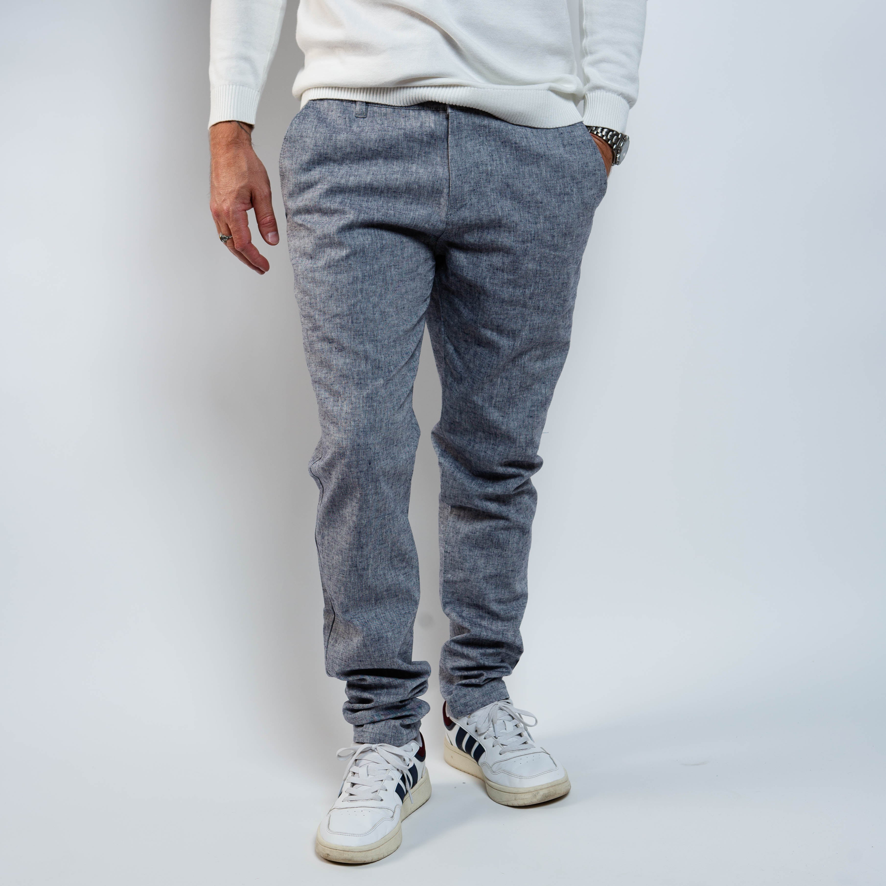 Tailored with precision in Italy, the Mondo Lightweight Trousers in Indigo Cross-Weave offer an effortlessly cool blend of structure and breathability. The textured weave pattern gives subtle depth, while the lightweight cotton-linen fabric keeps you comfortable and sharp in warmer weather.