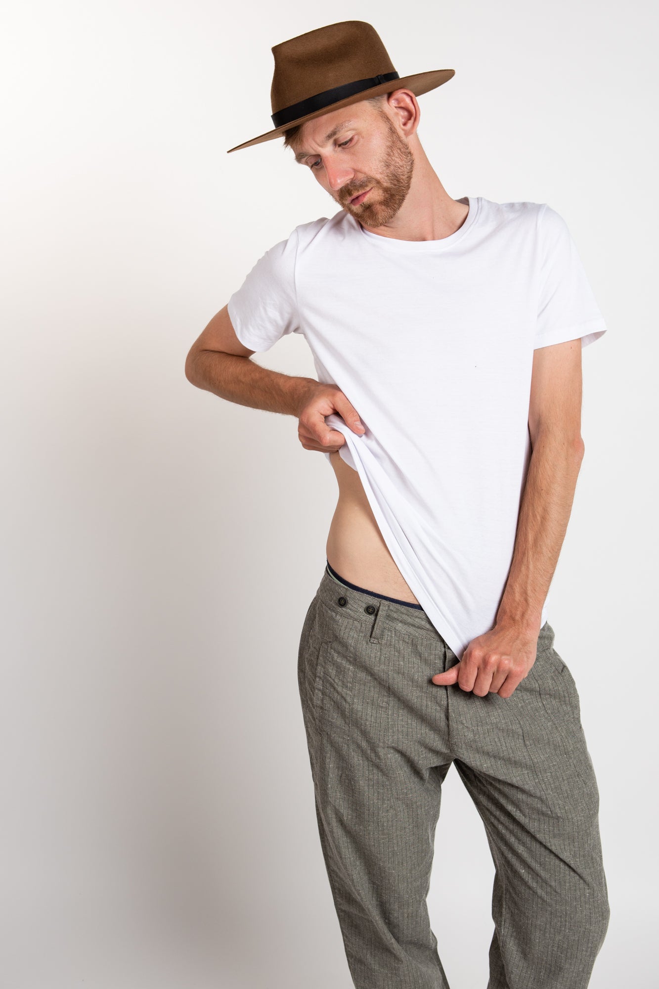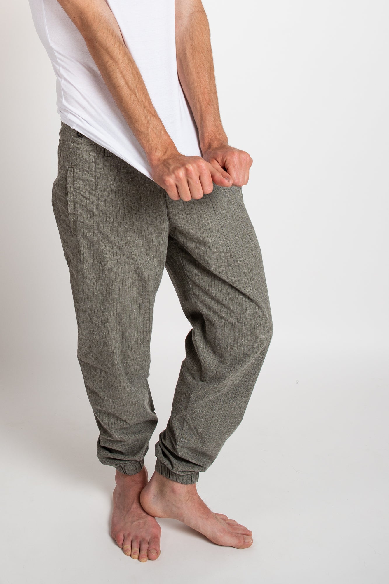 Groove in these men's pinstripe linen-blend joggers - with gathered ankle cuffs, they're ready for chillin'! Light and airy, they'll make the perfect summer must-have.