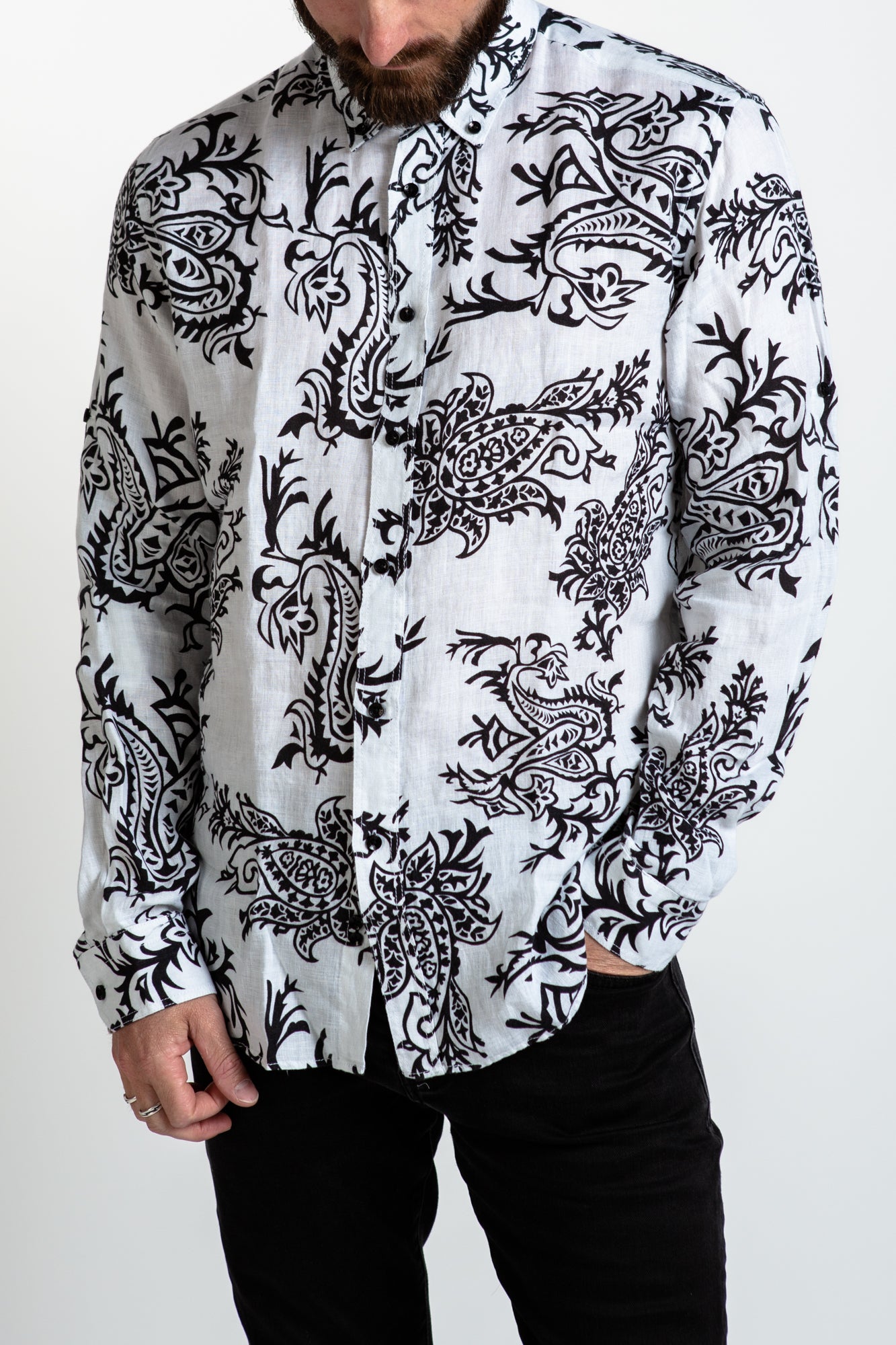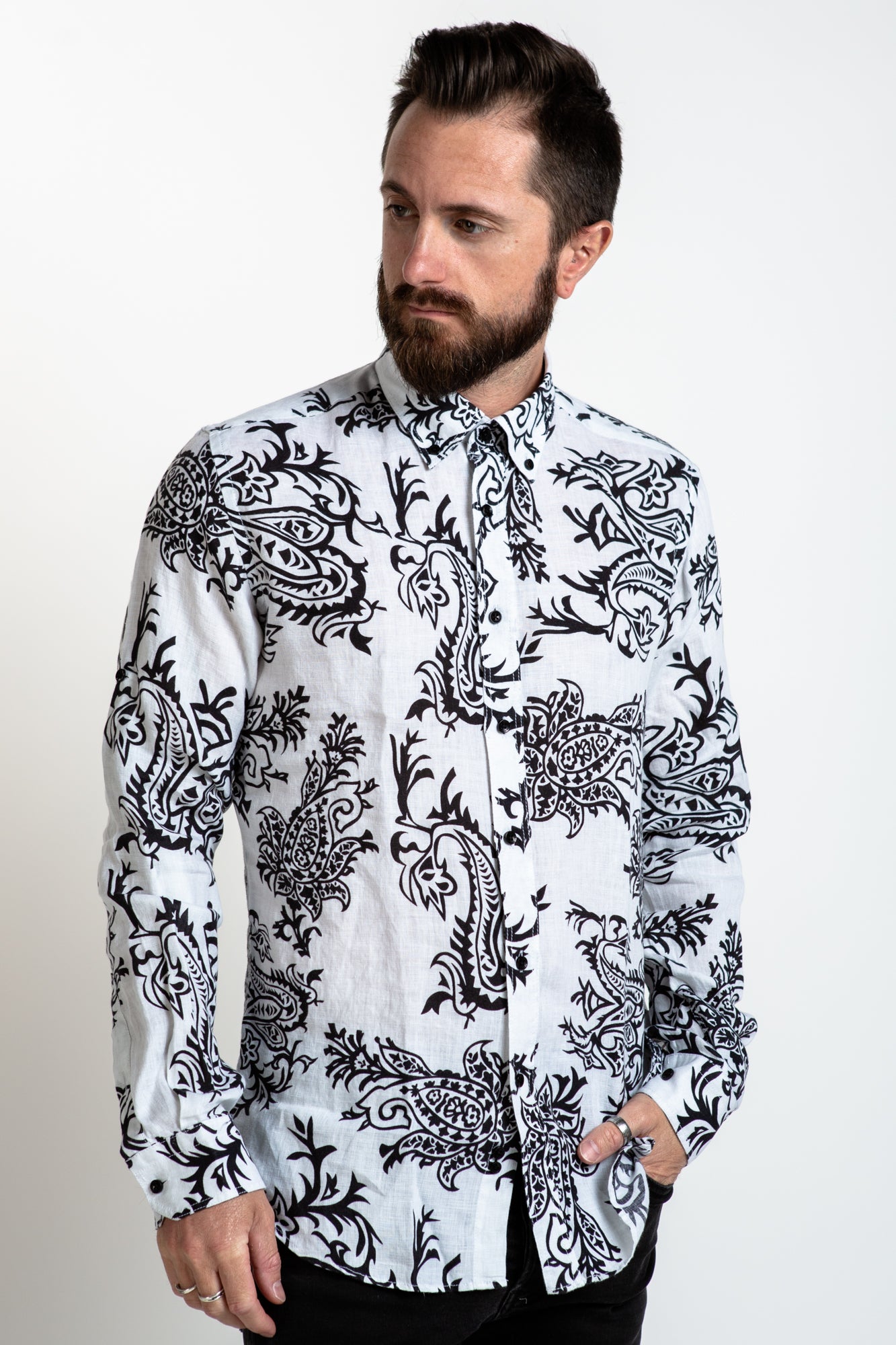 This Linen shirt brings classic style and a modern aesthetic. Crafted in 100% organic linen, it features a striking print, a collar, cuffs, and a button up closure. For a timeless look, it's the perfect choice.