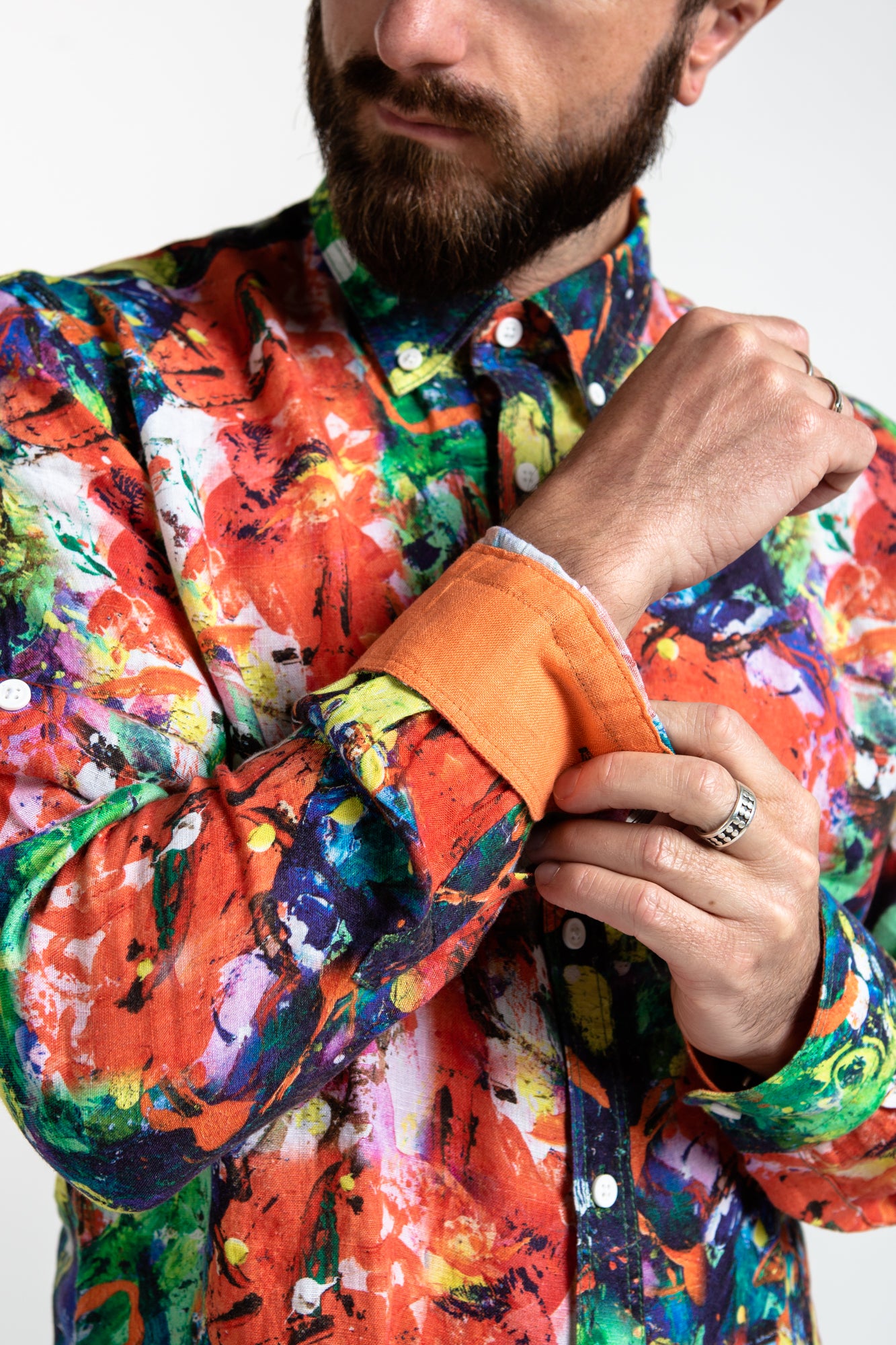 This Linen shirt brings classic style and a modern aesthetic. Crafted in 100% organic linen, it features a striking print, a collar, cuffs, and a button up closure. For a timeless look, it's the perfect choice.