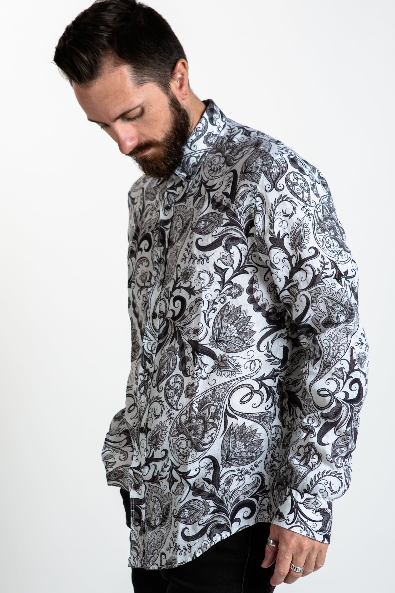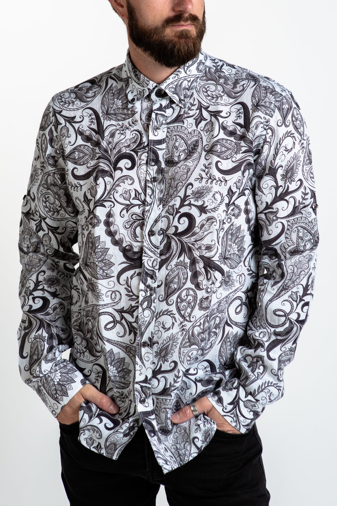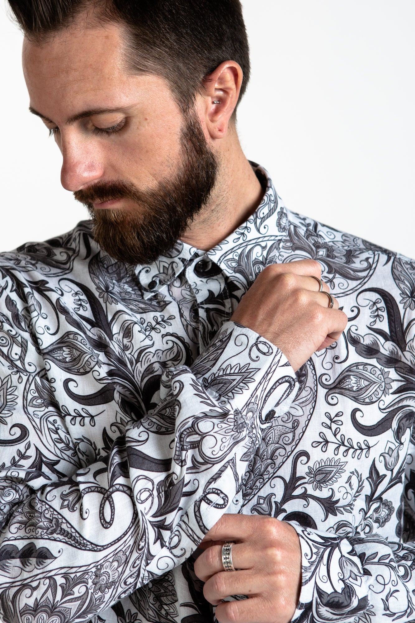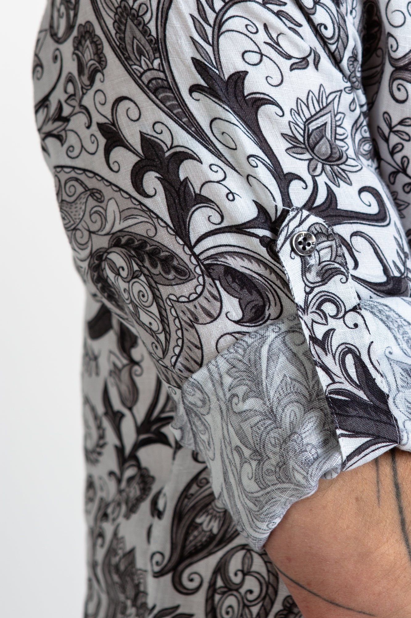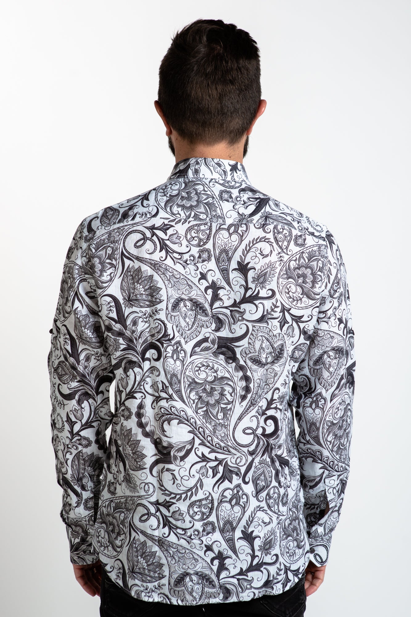 The LINEN SHIRT - ARAMIS brings classic style and a modern aesthetic. Crafted in 100% organic linen, it features a striking print, a collar, cuffs, and a button up closure. For a timeless look, it's the perfect choice.