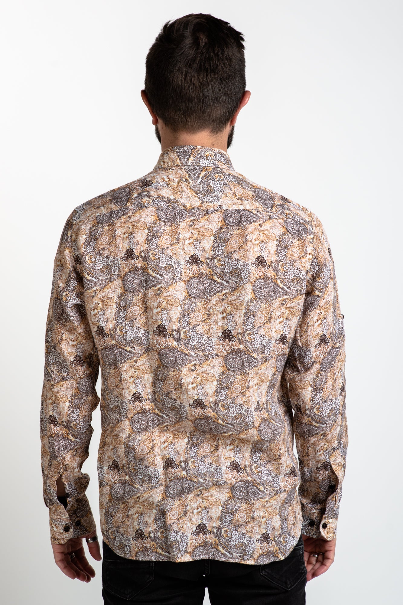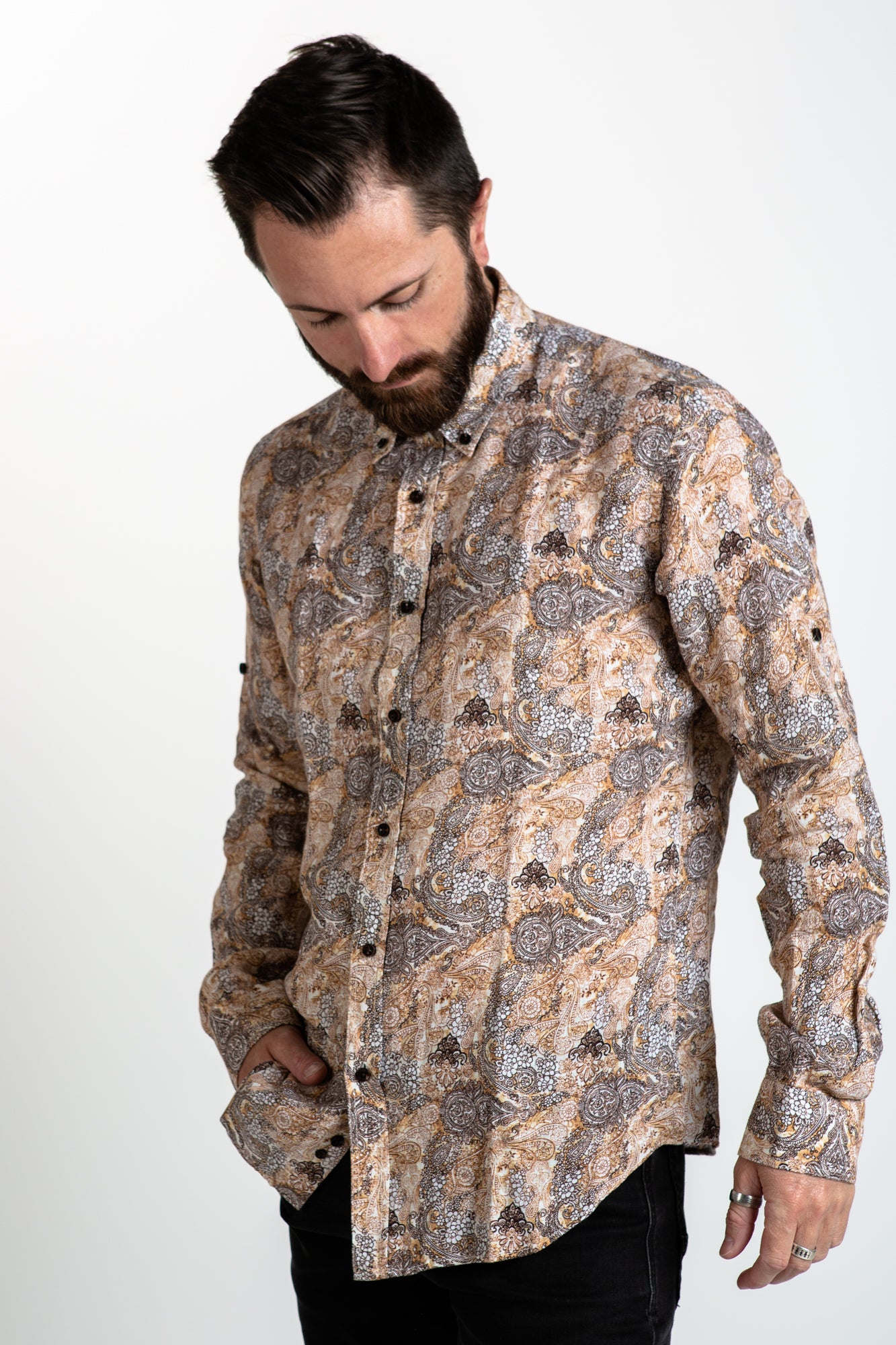 This Linen shirt brings classic style and a modern aesthetic. Crafted in 100% organic linen, it features a striking print, a collar, cuffs, and a button up closure. For a timeless look, it's the perfect choice.