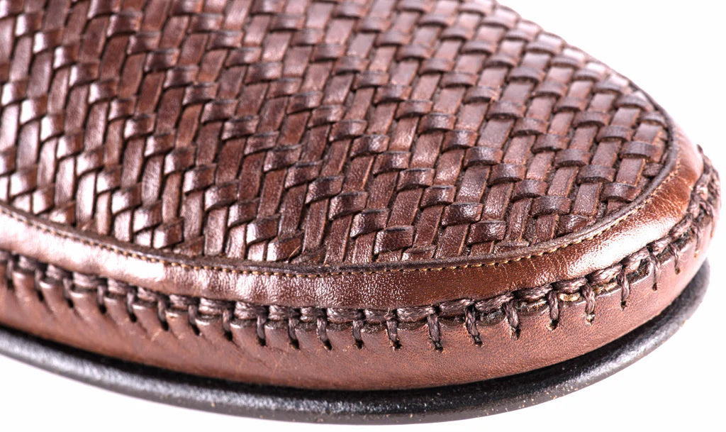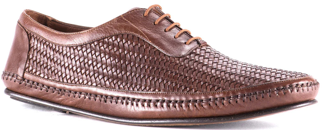 This delightful casual shoe has an impressive hand-woven leather vamp hand stitched to a solid counter. A refreshing twist on the classic oxford, this shoe boasts a super slim sole which makes it perfect for those summer days.
