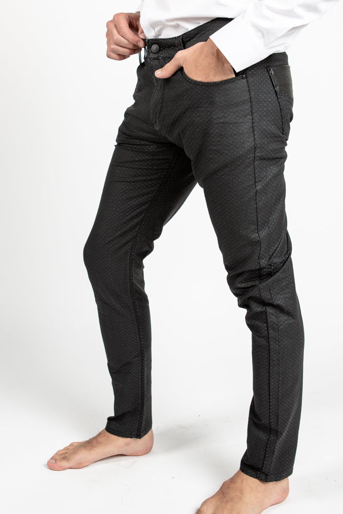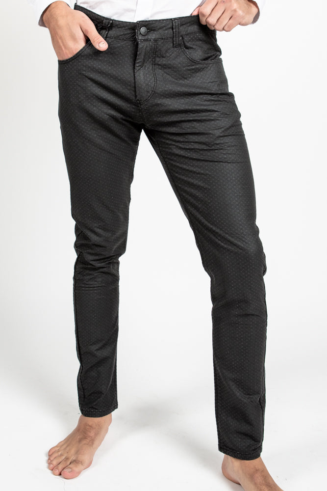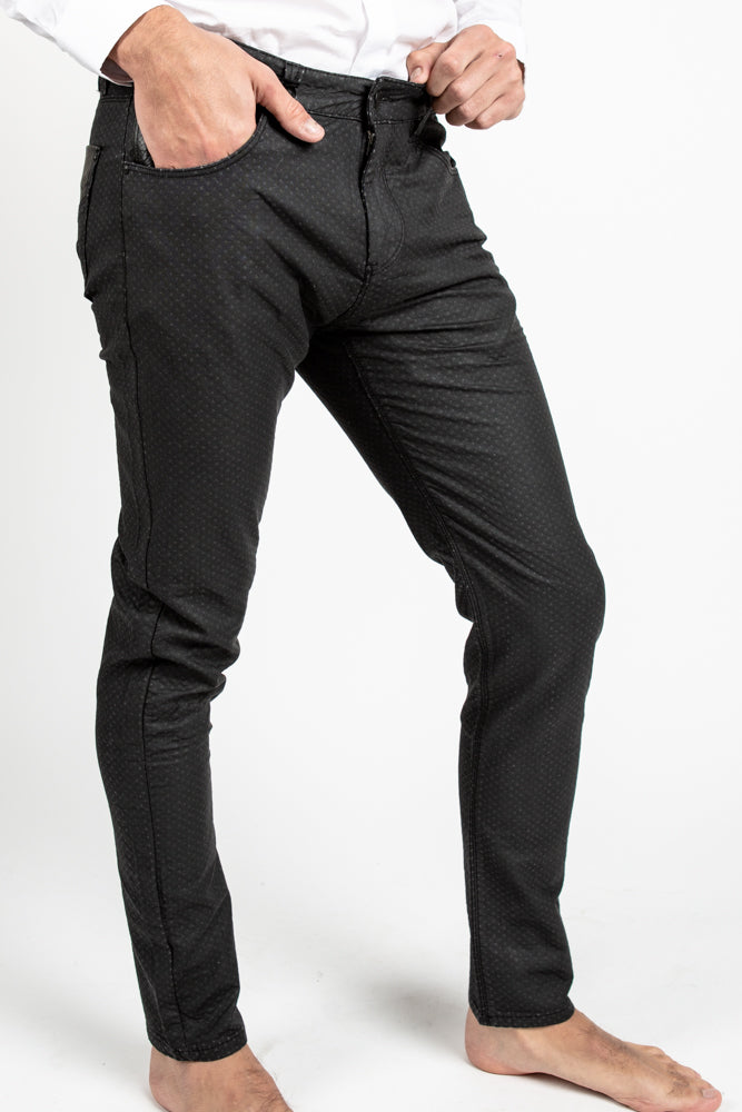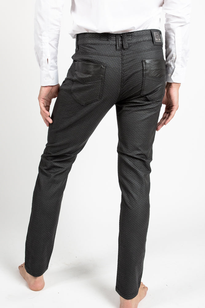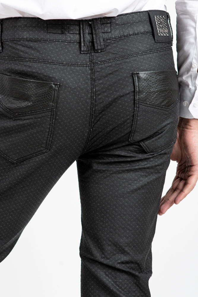 Mens' denim style edgy textured pants. Rock out the night in these bad boys.