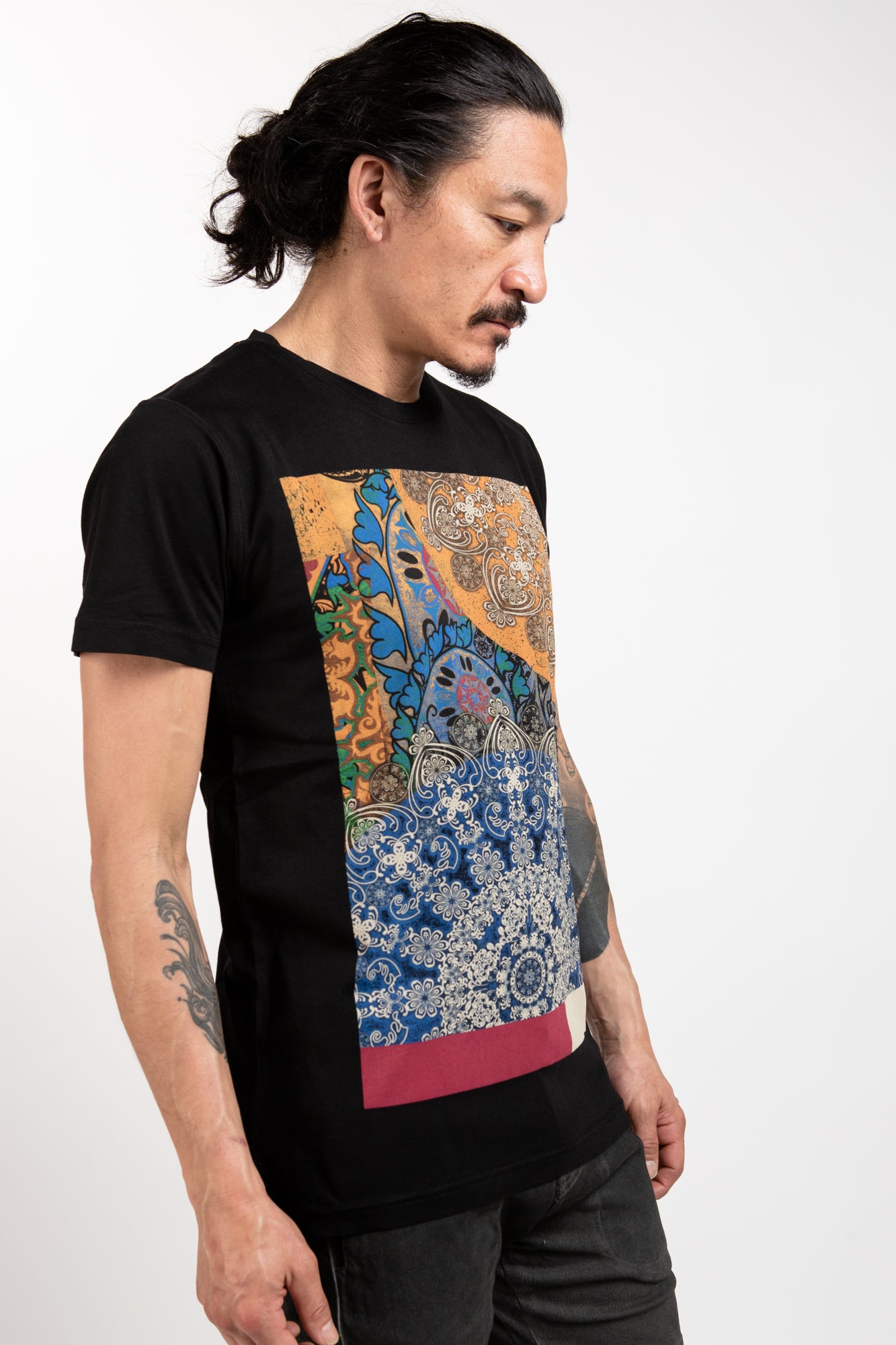 Be the life and soul of any event with the NIMANZ TEE - BLACK RUMI. Crafted from soft cotton, this stylish tee is complete with an eye-catching Persian art print and classic crew neckline. Perfect for evenings out and special occasions, the NIMANZ TEE - BLACK RUMI is sure to make a statement.