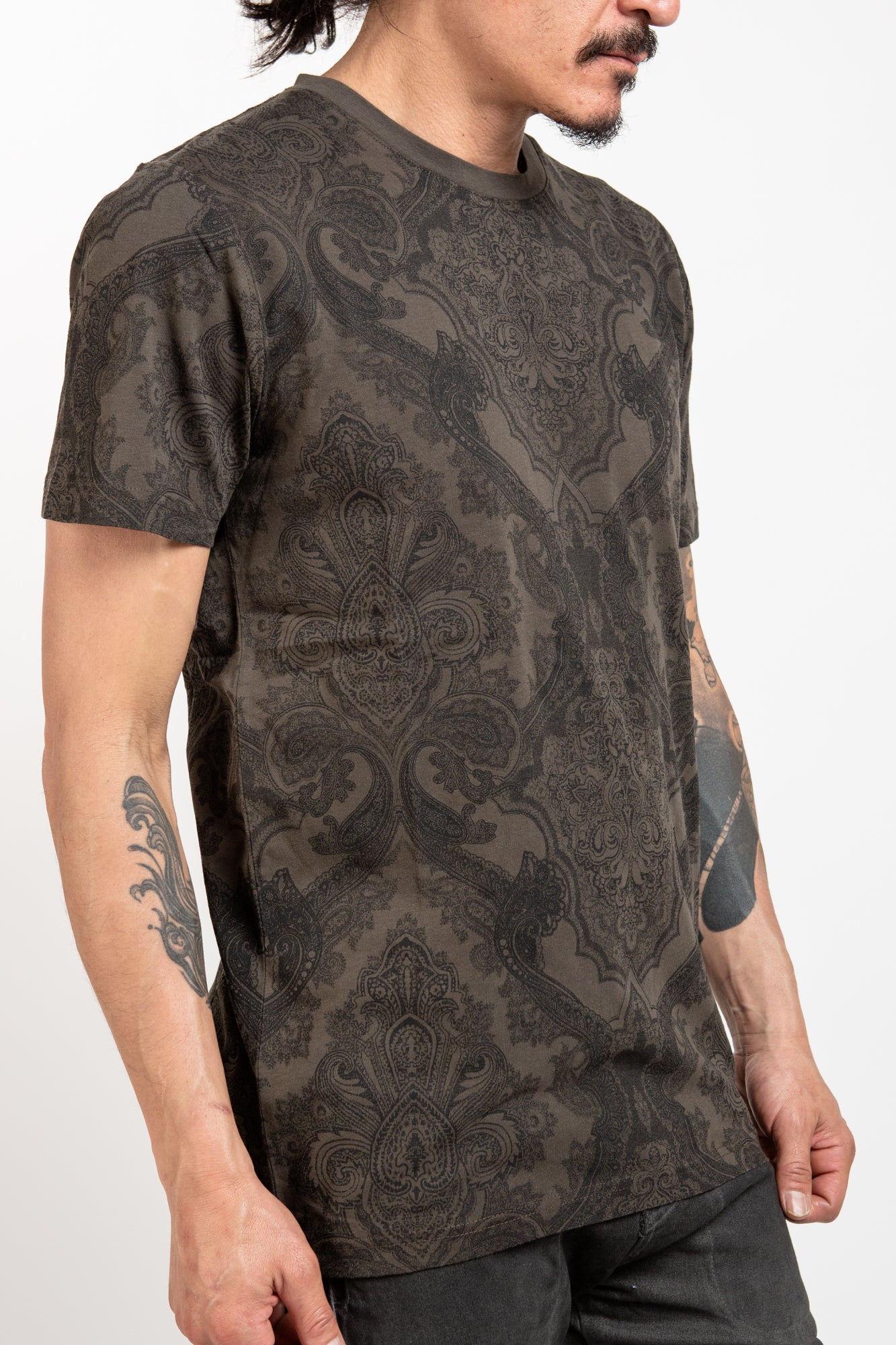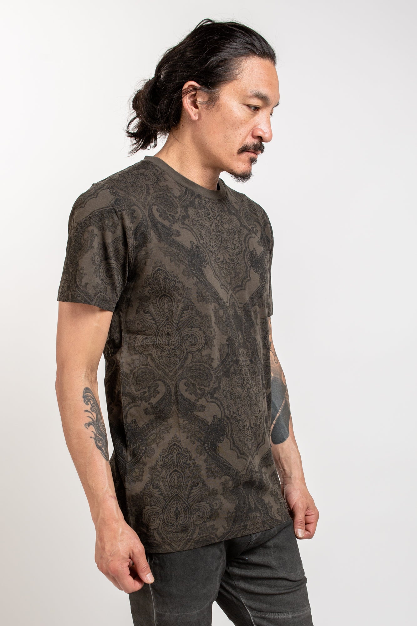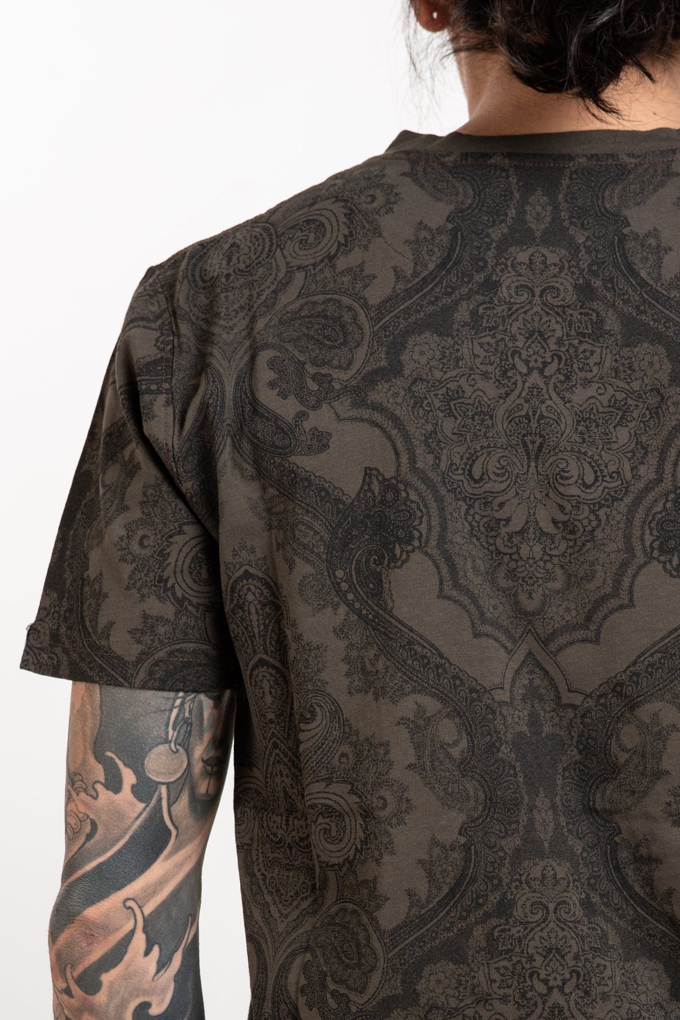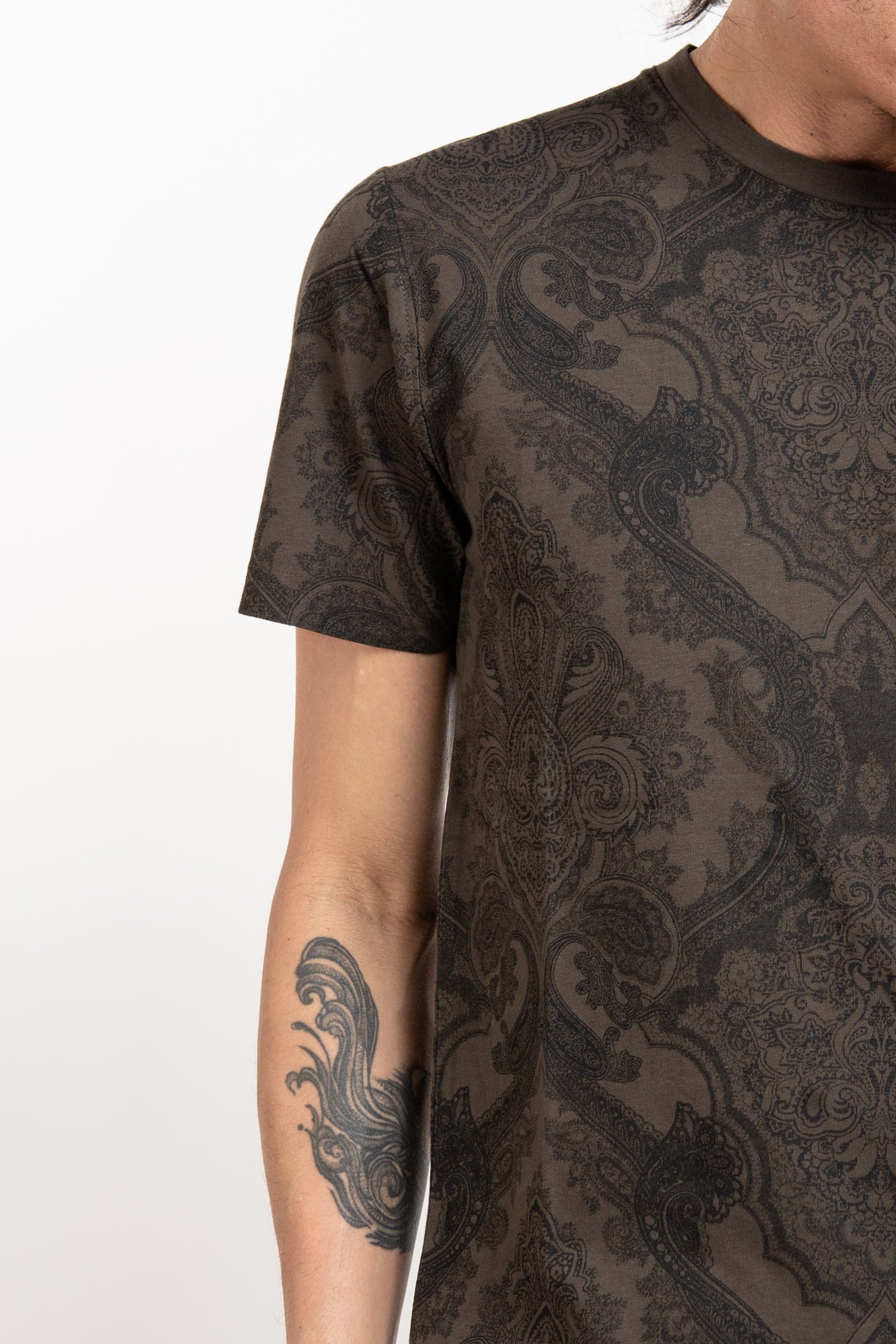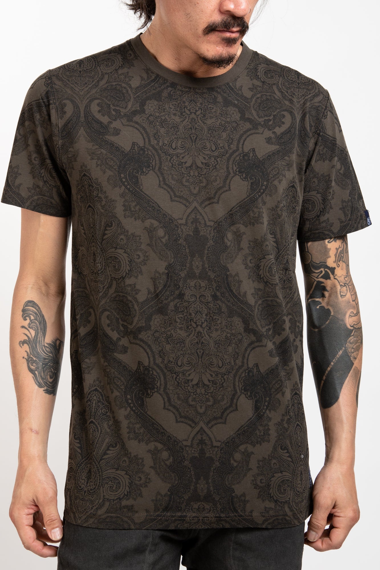 This all-over-design green NIMANZ TEE is a fashionable choice for everyday wear and going out. Crafted with a Mesopotamian-inspired design, it features a comfortable crew neck and is an ideal addition to any lifestyle wardrobe.
